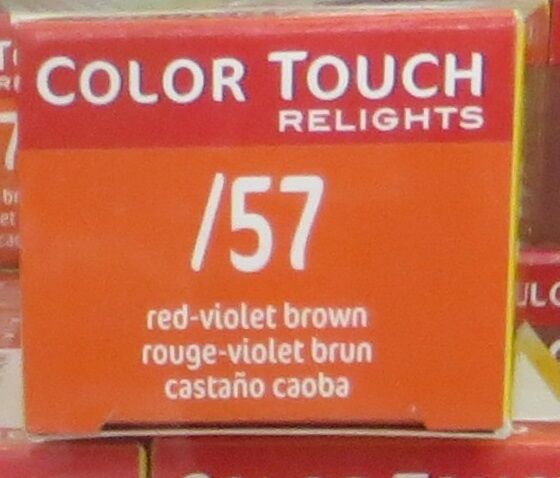Wella Color Touch Relights /57 Red-violet brown 2oz Wella Color Touch Relights /57 offers a Red-violet brown color to your hair. Combined with a complex of proteins in fiber with ingredients, it can deeply nourish and offer up to 63% more shine to the natural hair. The color comes with a professional formula providing brilliant shine. It offers a natural condition to make hair silky and smooth.