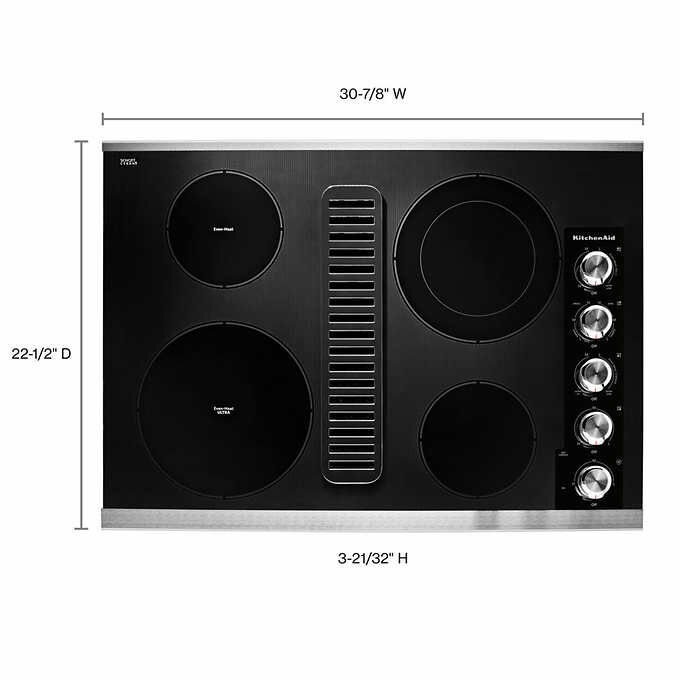 We have one KitchenAid KCED600GSS 30in Electric Downdraft Radiant Heat Cooktop 1356443 #96540 available. This unit has been lightly used and comes in the original box. We have inspected and tested this unit to make sure that it is in good working condition.