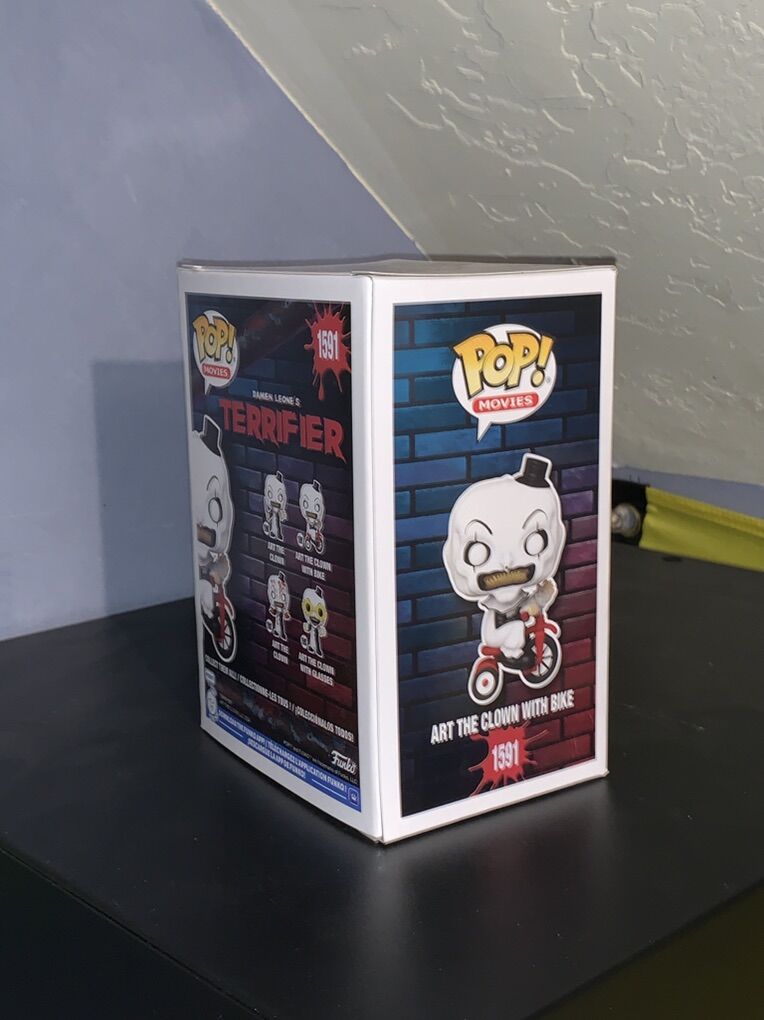 ApplePayTerrifier Art the Clown with bike Funko Pop brand new in the box and box is in great condition.