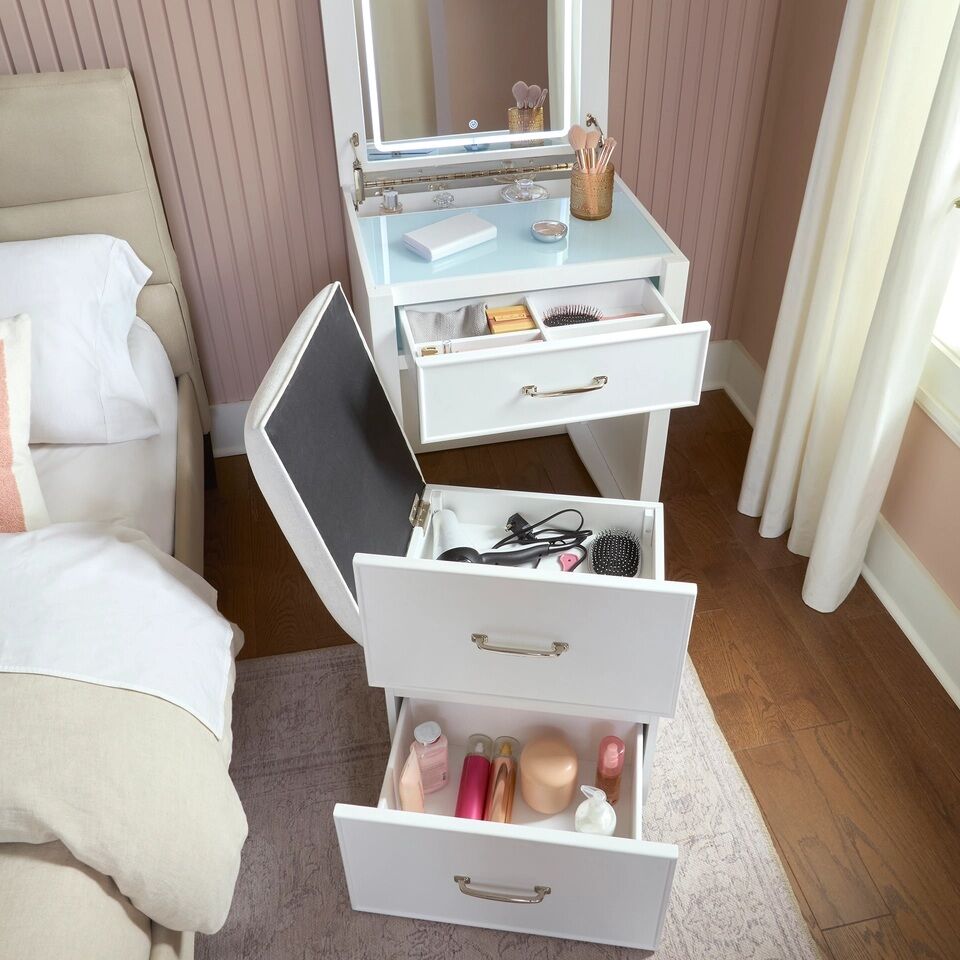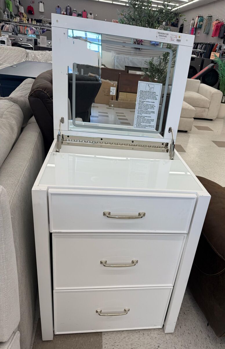 We have one Odessa Lift-top Vanity with Mirror 1695584 #101939 available. This vanity has been used and comes out of box along with power cords. There is also some damage on the top of it. We have discounted this vanity now to $200.00 to reflect the issues.
