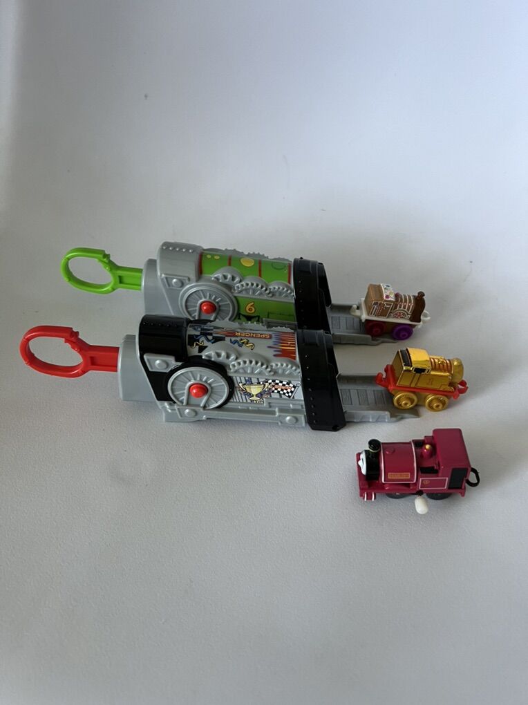 VenmoSpencer & Percy launchers along with Golden Thomas & a gingerbread train. Also a Skarloey windup train.