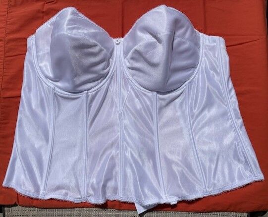 This super-shaping, corset-style torsolette provides complete figure control, with close-set boning and three-section fiber-fill cups for smoothing and concealment. The low-cut power-net back panel shapes and supports, and is perfect for wear with strapless gowns. Cut from elegant satin tricot fabric, this bridal bustier is trimmed in delicate lace for a feminine finish.