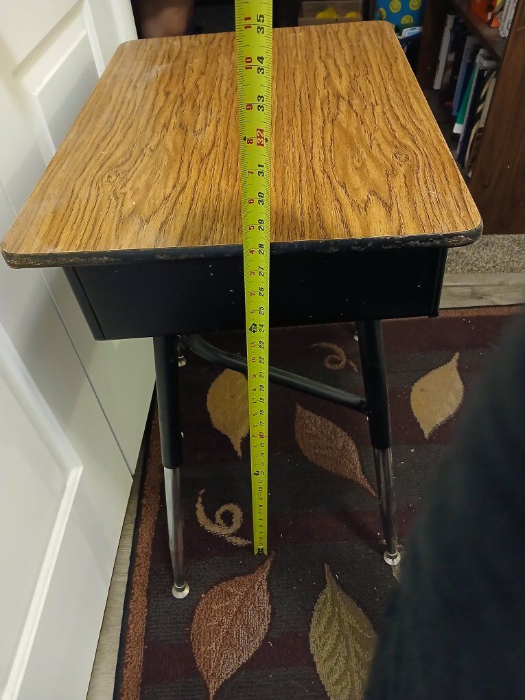 has open space for books and notepads. legs are adjustable. very sturdy. ready to have it live at somebody else's home. first $8 takes it porch pick up available.