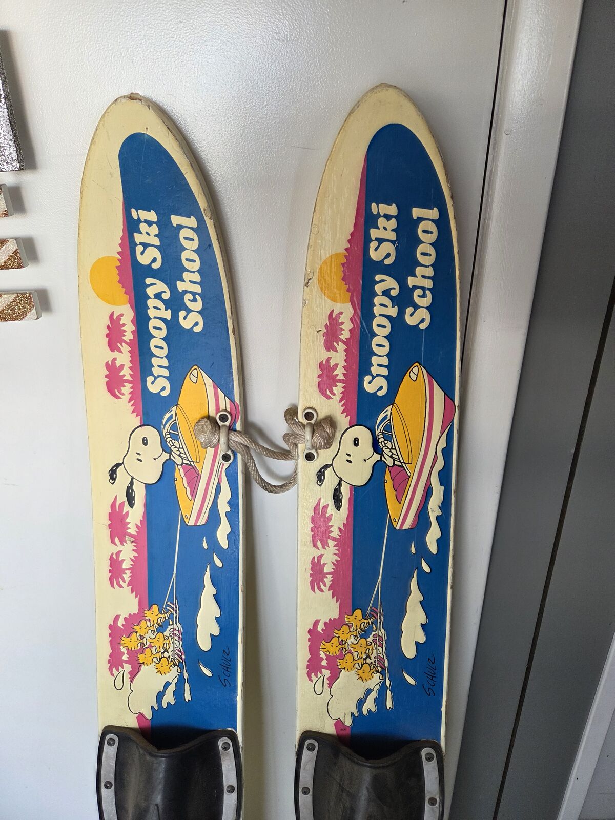 Vintage Snoopy Ski School Water Ski's 47" Wood Adjustable Kids Lake House Decor