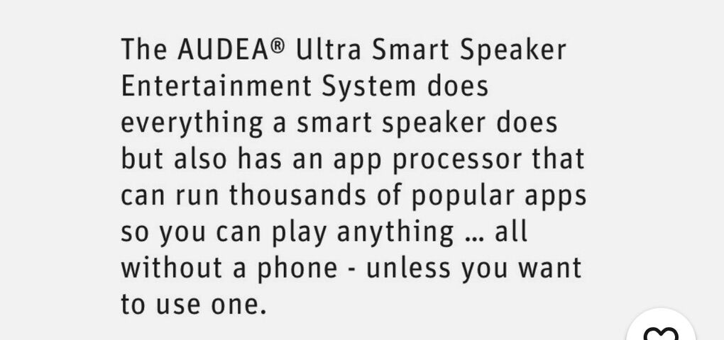 VenmoThe AUDEA® Ultra Smart Speaker System does everything a smart speaker does but also has an app processor that can run thousands of popular apps so you can play anything ... all without a phone - unless you want to use one.