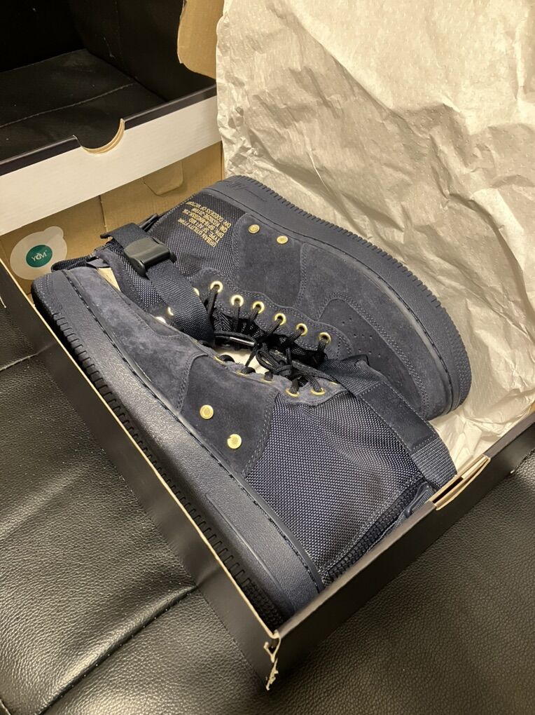 Brand New in Original Box Nike SF AF1 MID Obsidian Black Size 10.5 Item#917753 400 I bought these years ago from the Nike Factory in Park City UT. I intentionally set them aside and never used them. Over the last couple of years of moving, there’s some wear and tear around the box but these shoes are brand new, never worn. I am asking $750 cash. Open to trades of greater value. I’m interested in brand new factory sealed old school video game collections. Located in Orem UT.