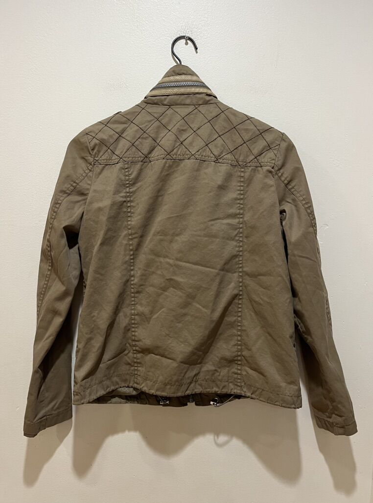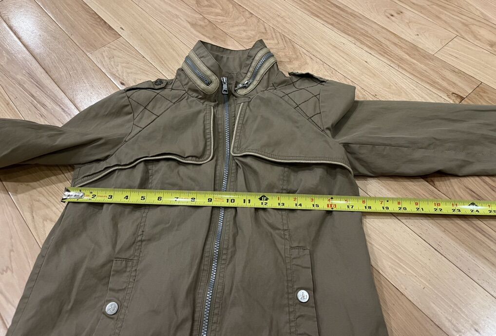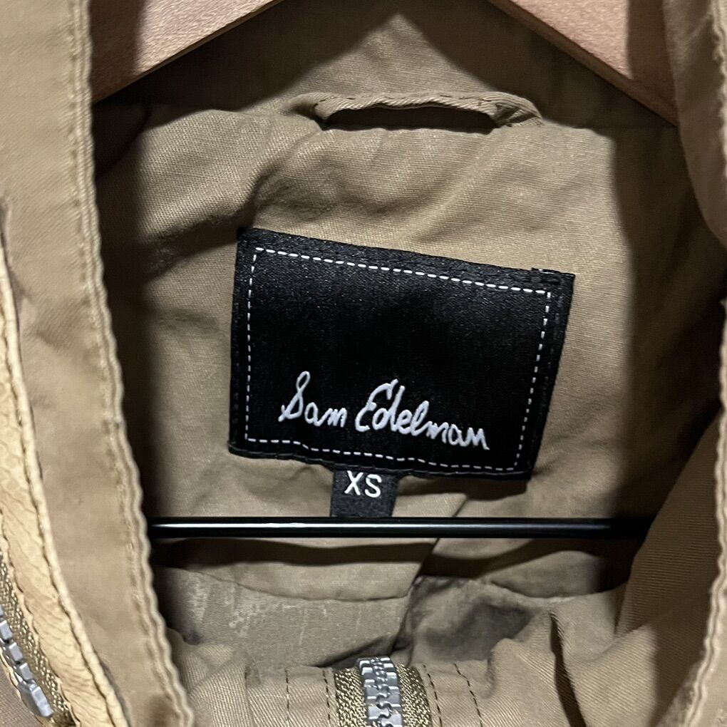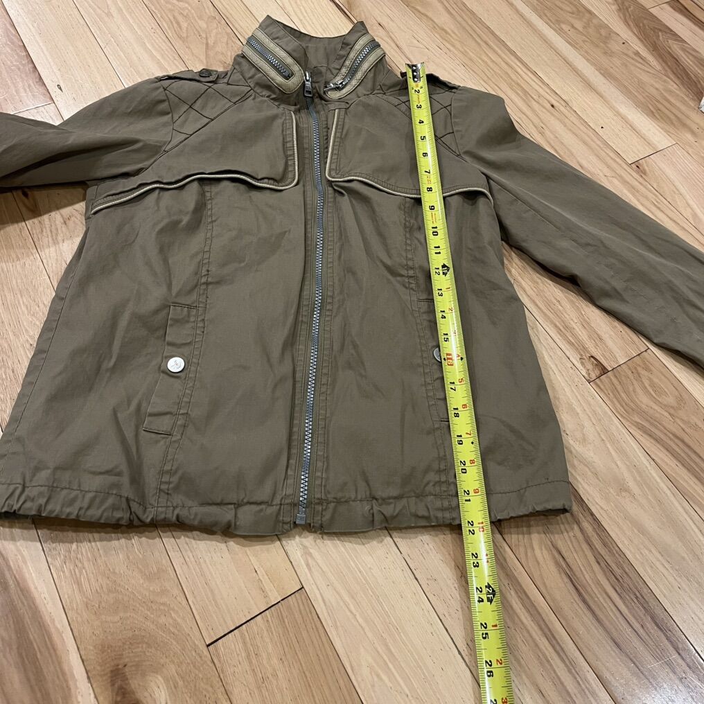 Sam Edelman Khaki Green/Brown Fully Zippered Front Utility Jacket - Women’s Size XS - lined with chest flaps, zipper neck (no hood), stitching design on shoulders, snap pockets and waist bungee drawcords - pre-owned, great condition.