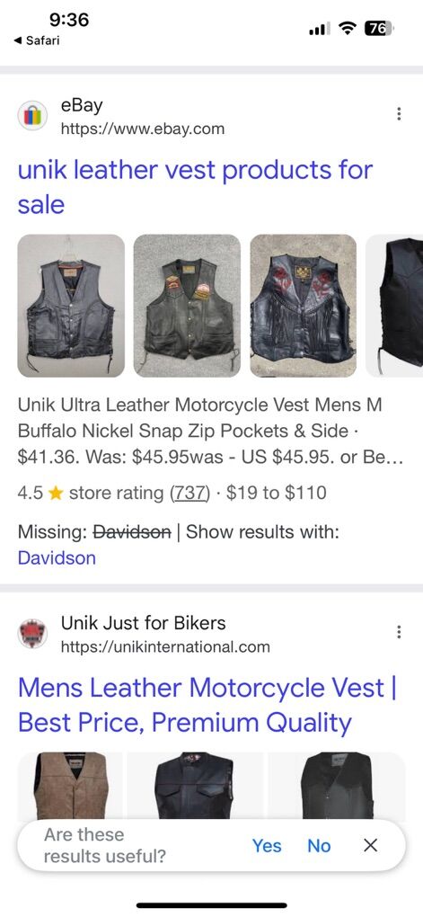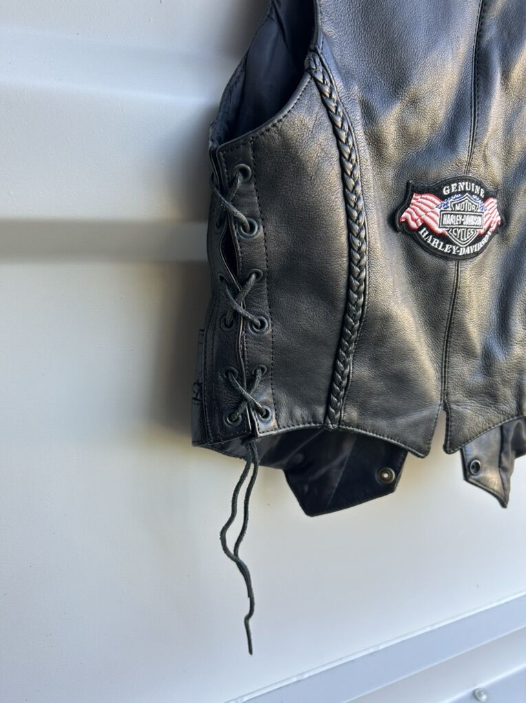 VenmoLike new women’s size medium black leather motorcycle vest from Unik Ultra. Adjustable side straps three snap button closure and two pockets at the waist. In excellent condition. Comes from a smoke free home. Cash or Venmo. Porch pick up from Alpine.
