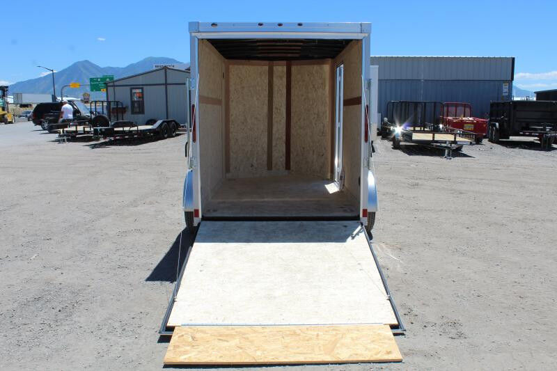 Stock #: HM3073 Trailer Specs: Color: Silver .030 Bonded Aluminum Overall: Length: 14'0" Width: 7'8" Height: 8'2" Interior/Bed: Length: 10' Box + V-Nose Width: 6' Height: 6'6" Door/Ramp: Rear Spring Assist Ramp Door (Width: 63" x Height: 67") Weight: 1,195 lbs. | GVWR: 2,990 lbs. | Payload: 1,795 lbs. Axle(s): 3,500 lb. Dexter Spring Idler Axle w/ EZ Lube Hubs Tire/Wheel: ST205/75R15 | Load Range C Coupler: Type: Bumper Pull | Size 2" | 4-Way 12V Connector 16" OC Vertical Posts | 16" OC Crossmembers | 16" OC Tube Roof Bows 3 Year Limited Warranty Standard Features: 2"x3" Tube Main Frame 1-Piece Aluminum Roof 24" Starbright Stoneguard 3/8" PlexCore Sidewall Liner 3/4" PlexCore Flooring 36" Side Entry Door w/ Flush Lock (4) 5,000# Recessed D-Rings Flow-Thru Sidewall Vents 12v Interior LED Dome Light 12v Exterior LED Lighting Smooth Aluminum Radius Fenders Undercoated Chassis Common Addons: Wall Mounted Spare Tire 10 ft. E-Track Stick Recessed 2,500# D-Ring Additional Colors Available Call for Availability WASATCH TRAILER SALES - LARGEST TRAILER SELECTION IN UTAH Springville: (801) 528-1581 | 1180 S 2000 W, Springville UT, 84663 View More Inventory: www.wasatchtrailer.com