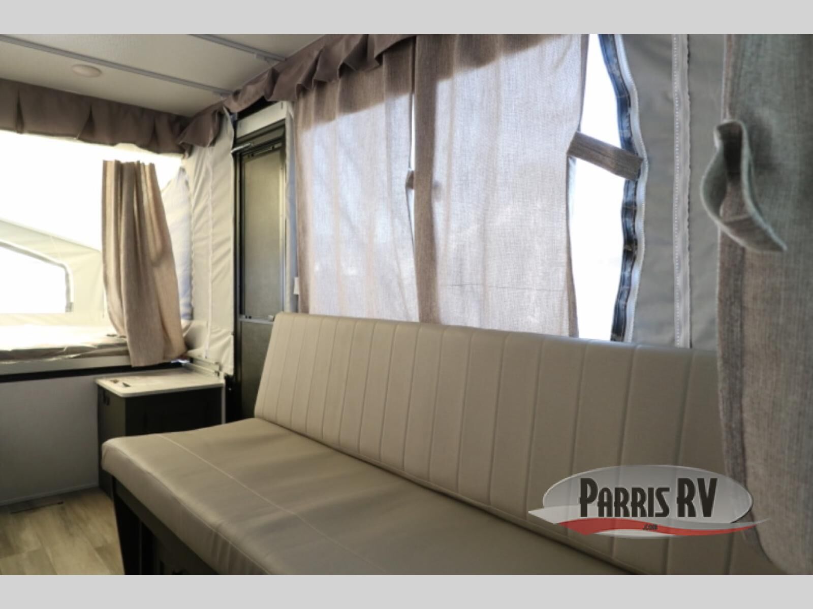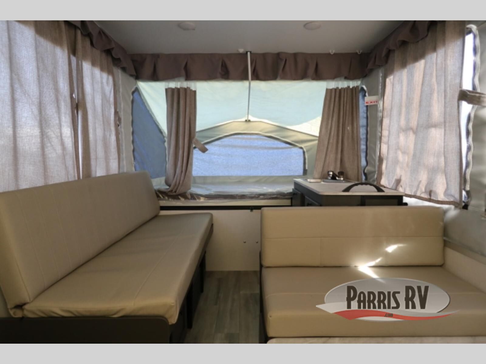 With any Rockwood Freedom Series by Forest River, you will enjoy added features to make each excursion one to remember. These folding pop-up campers feature a fiberglass laminated roof, wood plank flooring, and a Clay exterior with an alloy band. The leaf-spring axles, electric brakes, and balancing bead/nitrogen filled tires will make towing easier than ever, plus there are four stabilizer jacks with sand pads to help keep your unit secure. Each model also includes an awning with LED lighting outdoors, along with a one-piece screen door, two 20 lb. LP bottles, and a power roof lift to have you set up in no-time. Inside, the 15K under-bunk A/C and 20K BTU furnace will help keep you comfortable, and the Create-A-Breeze roof vent fan will keep the air moving!
