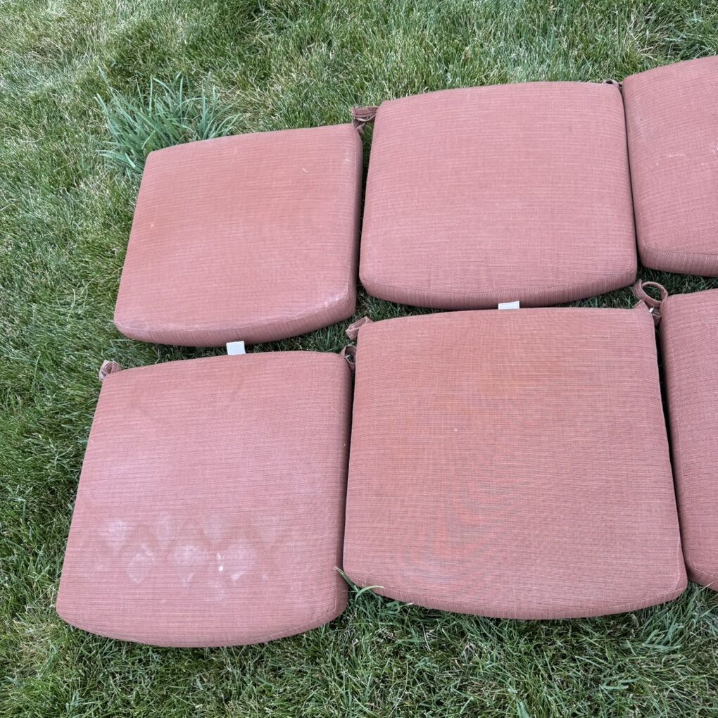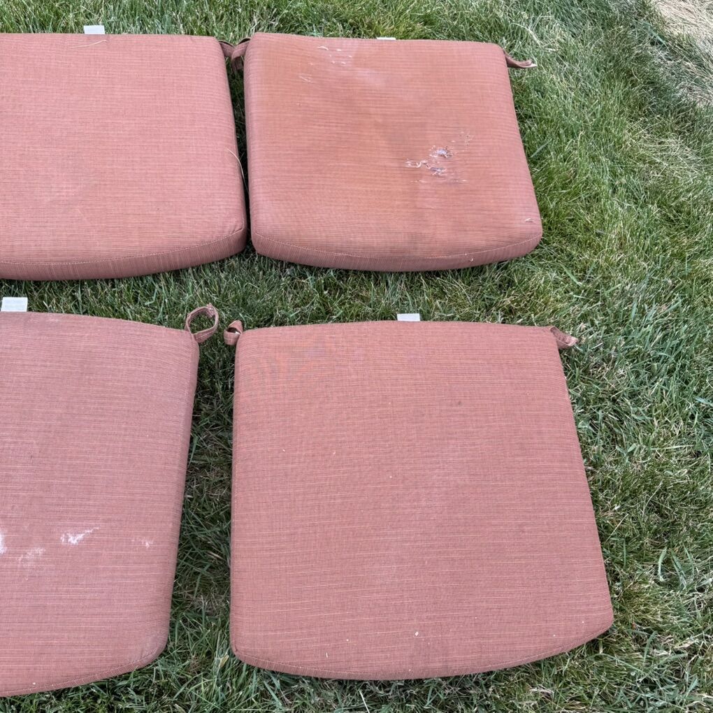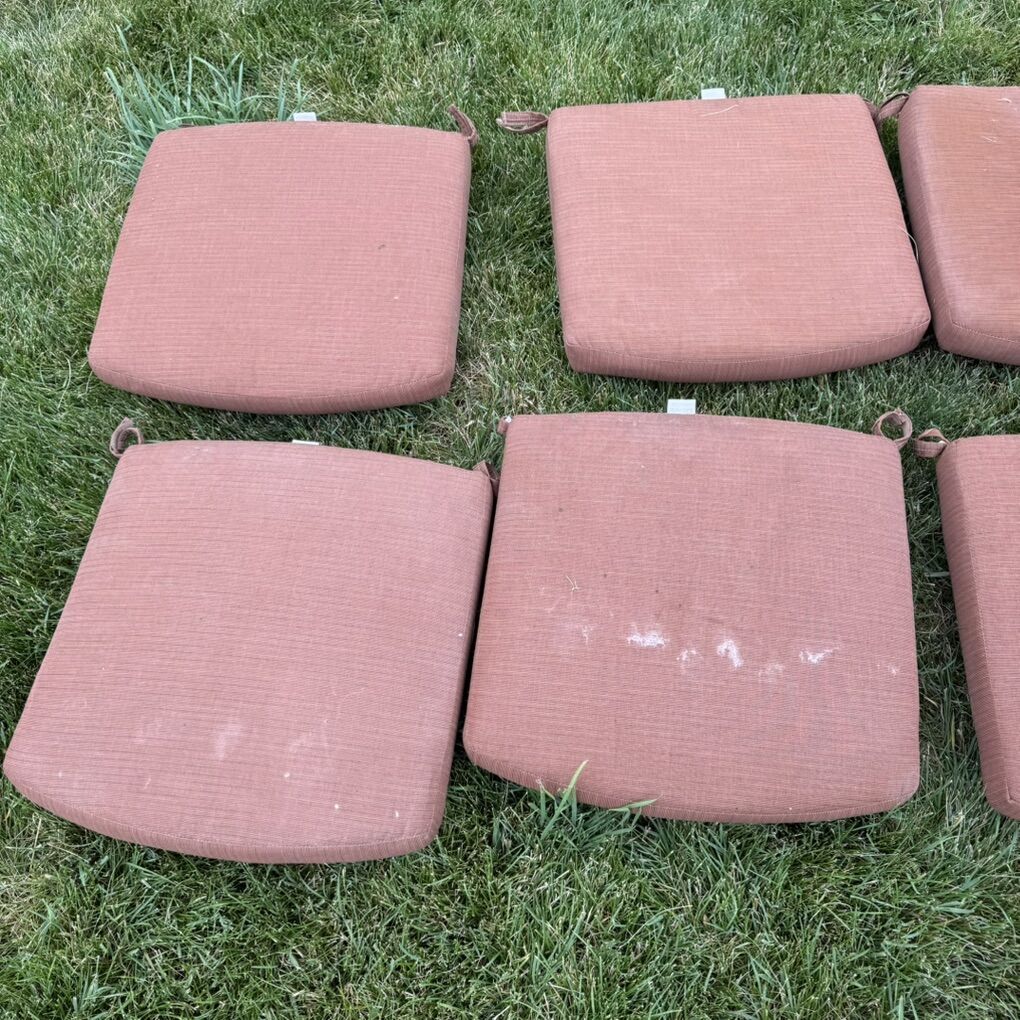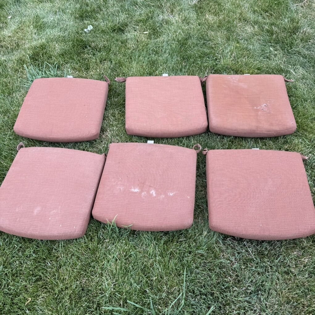 Sunbrella Set of 6 Rust Orange Outdoor Chair Cushions They do show some wear. Please see photos for a more detailed description