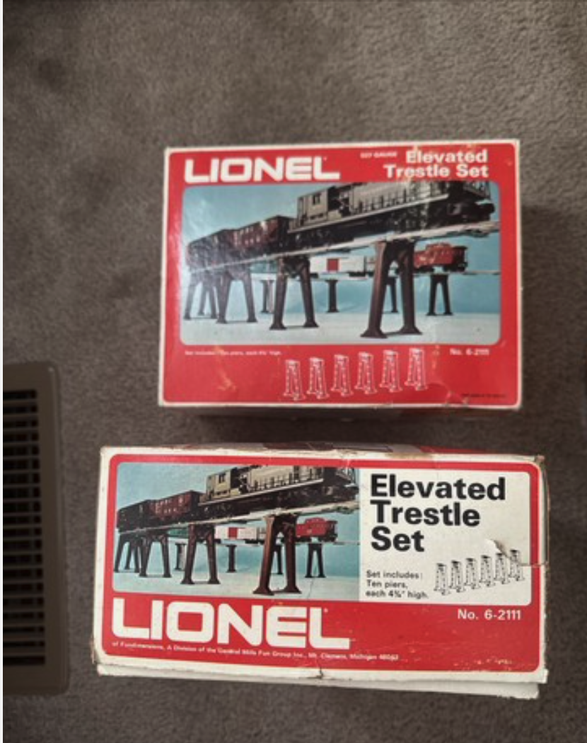 LIONEL ELEVATED TRESTLE SET 6-2111. NOS OPEN BOX. 10 PIERS 4.25" HIGH. TEXT OR MESSAGE ONLY