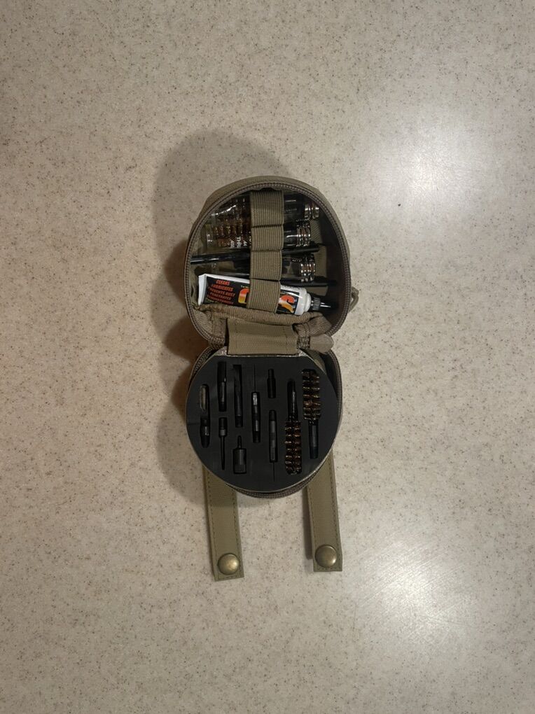 Brand new Otis military issue weapons cleaning kit for 5.56mm, 7.62mm, 9mm, .40 cal, .45 cal, .50 cal, & 12 gauge. Comes in a carrying case with webbing attachments. $20 or best offer and shes all yours. Text preferred, pickup only.