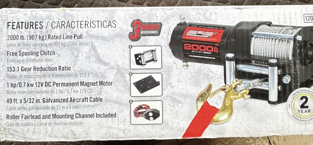 VenmoCPE (Champion Power Equipment) power sports 2000-lb. ATV/UTV Winch Kit Great for ATV’s, Trailers, Boats and snowmobiles. With remote control.
