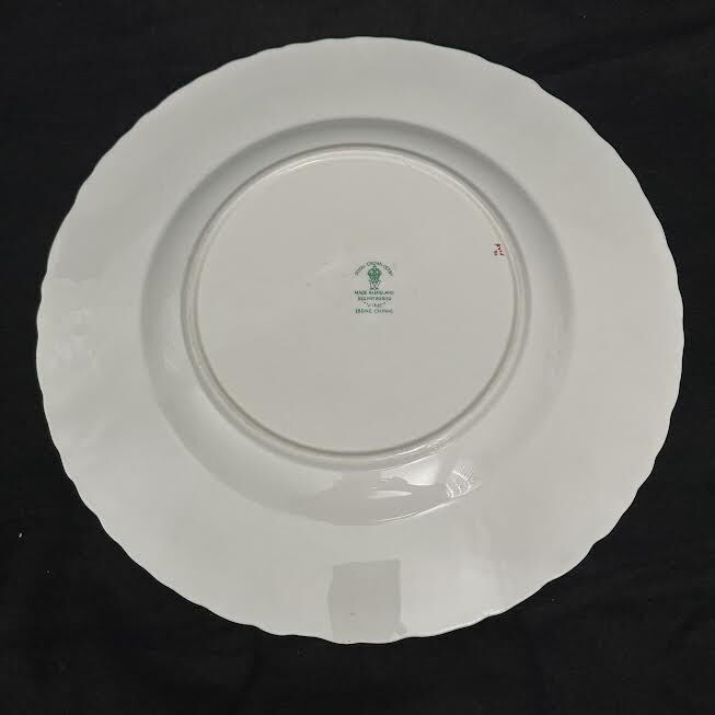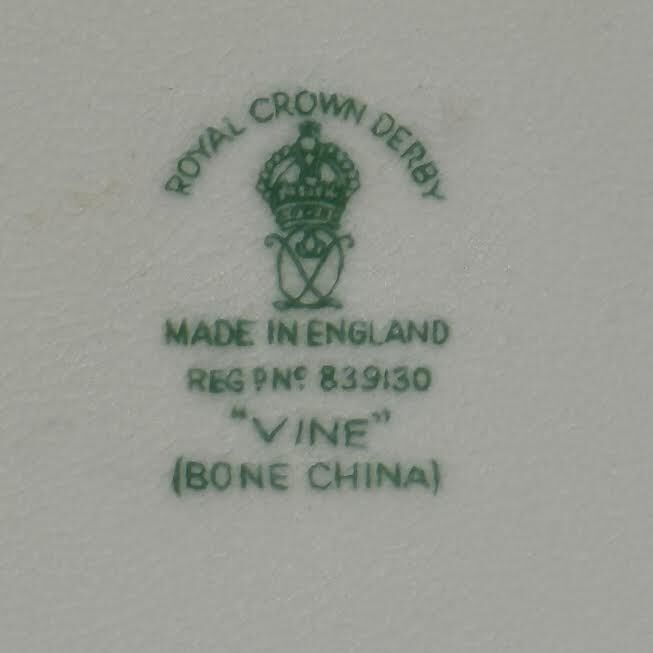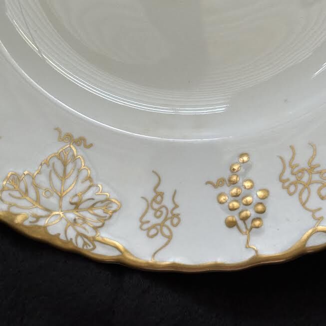 VenmoRoyal Crown Derby “Vine” dinner plate. New. Made in England. Bone china. Creamy white glossy finish with gold grapevine pattern. Gold fluted edge. Width 10-1/4”. Weight 1.3 lbs.