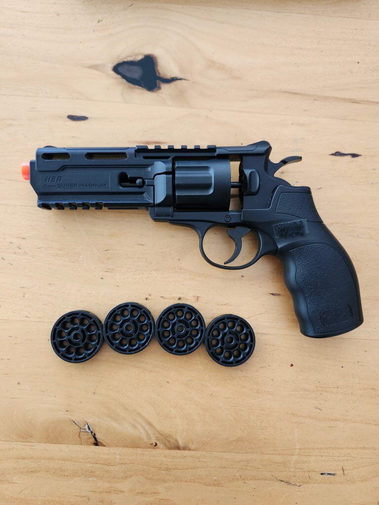 4 - 10 round revolver magazines 14 - rifle magazines 6 slot magazine belt 3 - speed loaders 1 Box (32 count) - Crossman CO2 cartridges