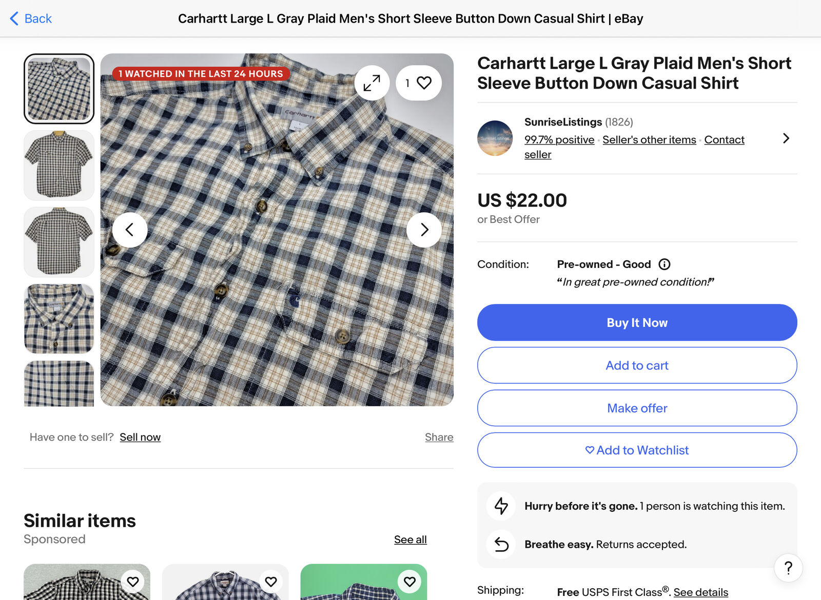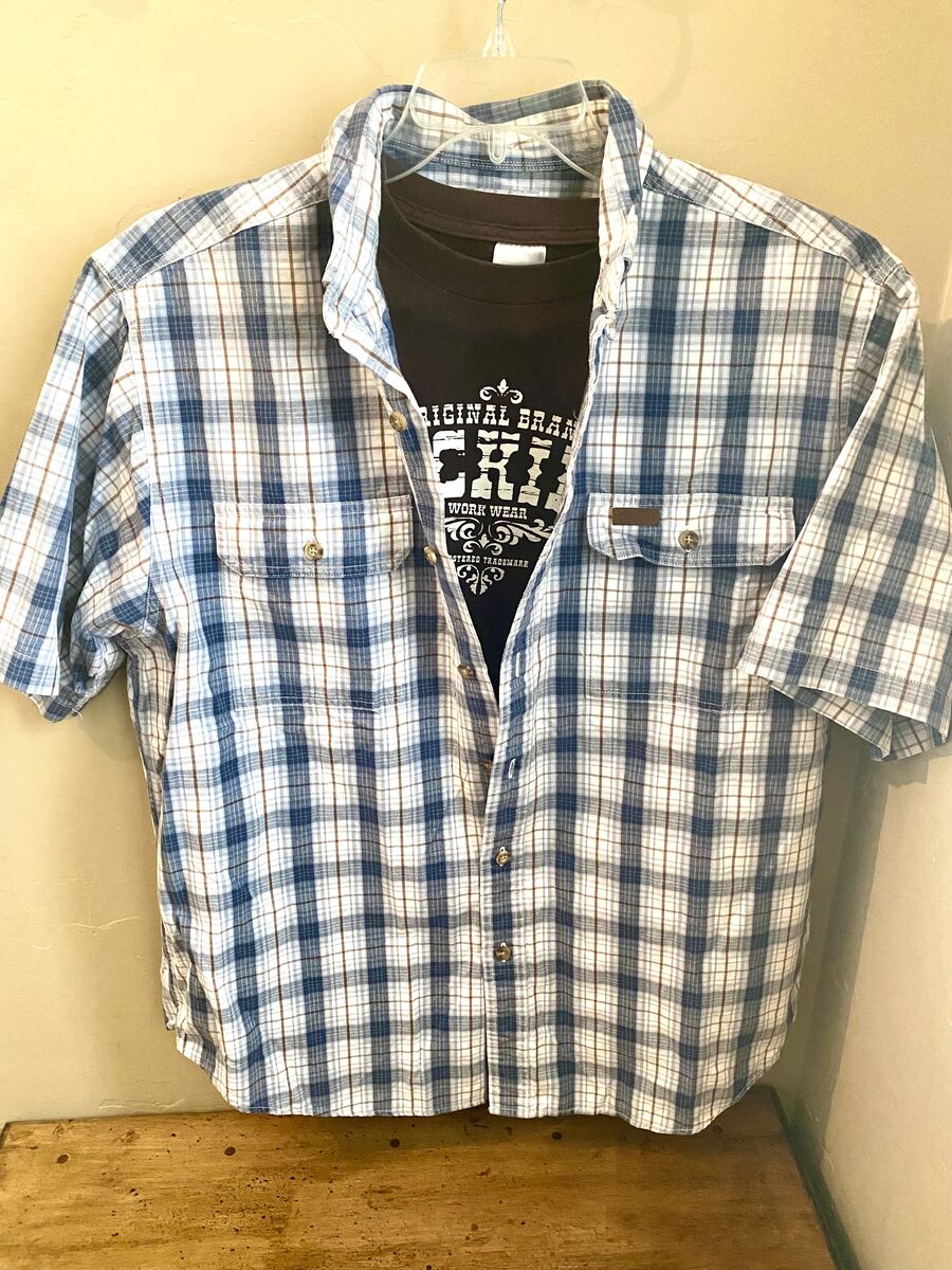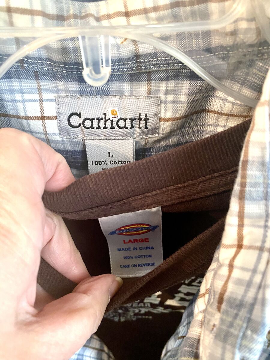 LIKE NEW- 2 Shirt Mens Combo Carhartt SS Button Up + Dickies T-Shirt Both SZ L - C PIX . These shirts have only been worn a few times, no stains, or rips. Similar shirts sell elsewhere for more than $44.