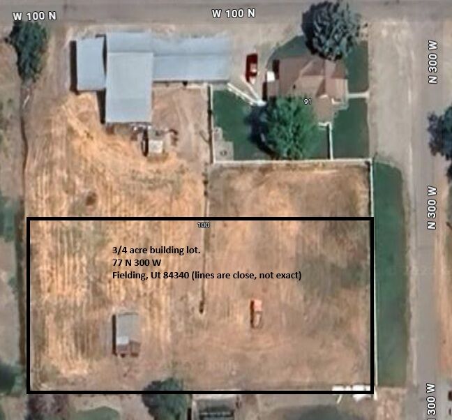Welcome to the quiet life of country living! This listing is for a residential building lot in Fielding, Utah. It is entirely flat with no hills or valleys. It is .75 or 3/4 acre. It is inside city limits. It has electric power, natural gas and high-speed internet available. (Not stubbed, but available.) No HOA's. Must have a water share certificate before the town of Fielding will issue a building permit. Seller has a water share certificate available for an additional $35k. Price is subject to change as their worth continues to grow. The house to the north will also soon be available for sale. It too sits on a 3/4 acre lot. That gives you options if you wish to buy the existing home and keep the pasture in the other lot, or live in it while you build a new home and then convert the existing home into a rental home. Thanks for looking! More photos coming soon!