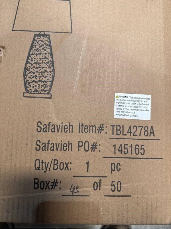 Finish type: Polished; Base material: Ceramic; Product dimensions: 15D x 15W x 27.5H; Blue and white linear ceramic body with white cotton shade; Includes high-quality energy-saving LED bulb; Full dimensions: 15W x 15D x 26.5H