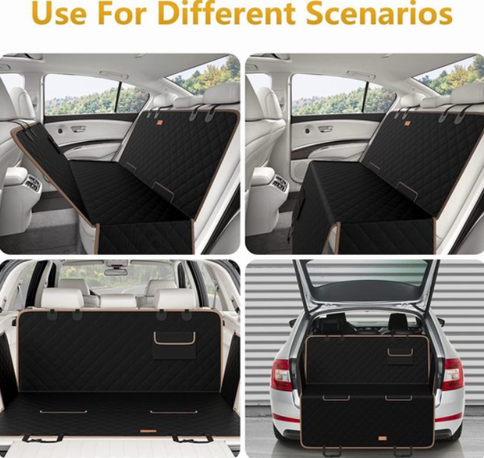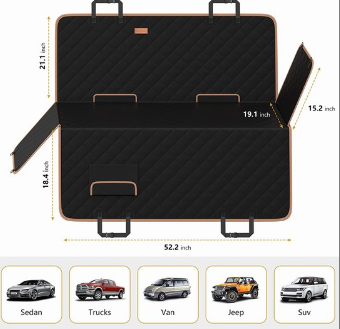 ZelleMade of 600D scratch-resistant Oxford fabric, EPE pearl cotton, and multi-layer waterproof materials, this product is waterproof, non-slip, scratch-resistant, wear-resistant, stain-resistant, and moisture-proof. It features an attractive appearance and long service life. Suitable for car backseats of all sizes, it is easy to install and clean. It effectively protects car seats from pet waste and can also be used when transporting goods to safeguard the car seat or trunk. Dimensions: 52.2 x 58.6 inches.