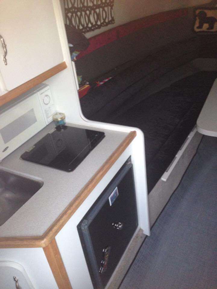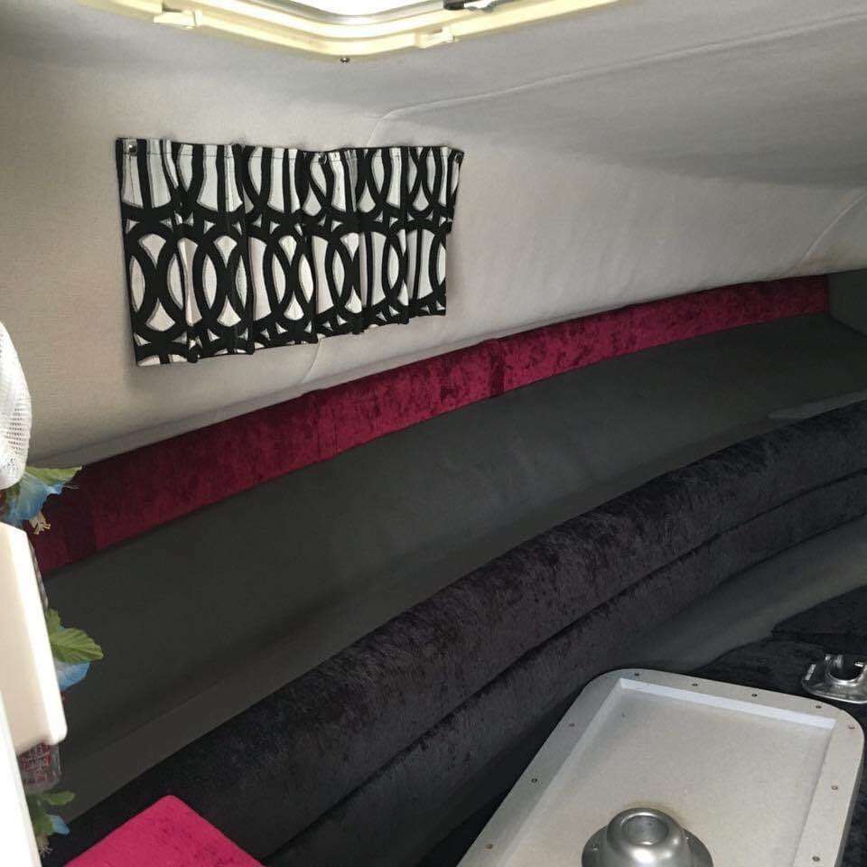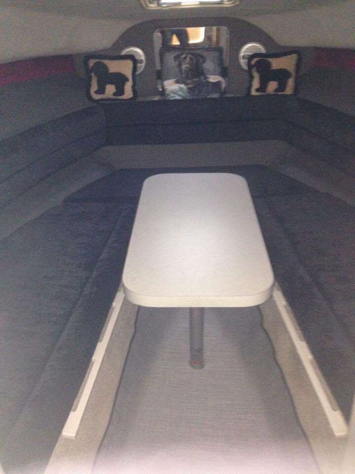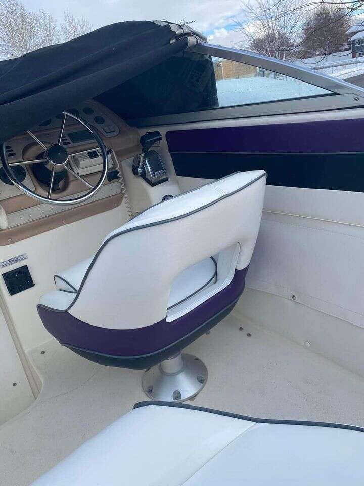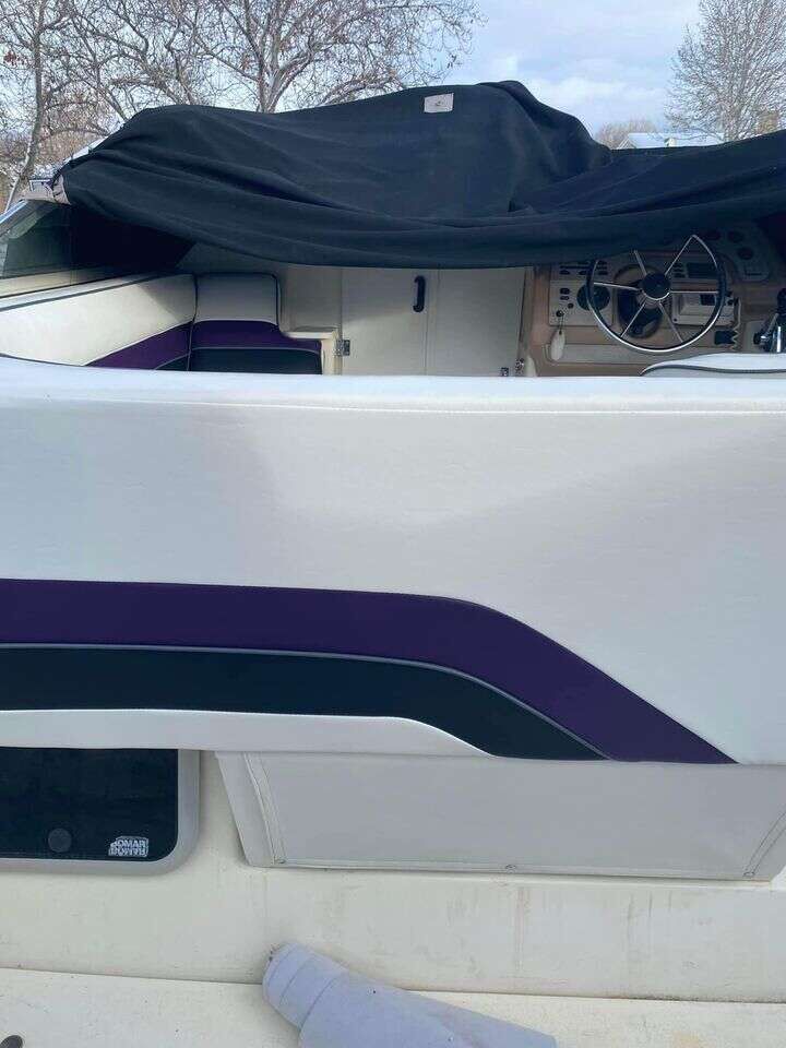VenmoNew upholstery inside and out. New carpets. 7.4 Mercury Bravo Three engine. Bathroom has a shower, sink and toilet and there is also a shower on the back of the boat. Microwave, stove, refrigerator and stainless steel sink in the galley. Big swim deck. Pillow top mattress in the aft cabin. Camper enclosure, trailer, travel cover, storage cover, BBQ and air conditioner included. Has lots of power and get up and go and gets good gas mileage. It’s in excellent condition and has been well taken care of by us in the 19 years that we’ve had it. There was only one other owner before us and they owned the boat dealership and this was their personal boat. Everything works except the marine radio. We are selling it because we moved to an HOA and we have to pay to store it now.