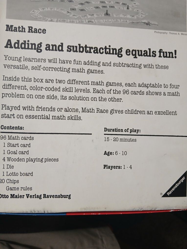 CashAppMath Race 1988 Board Game by Otto Maier Verlag Ravens Burgerg