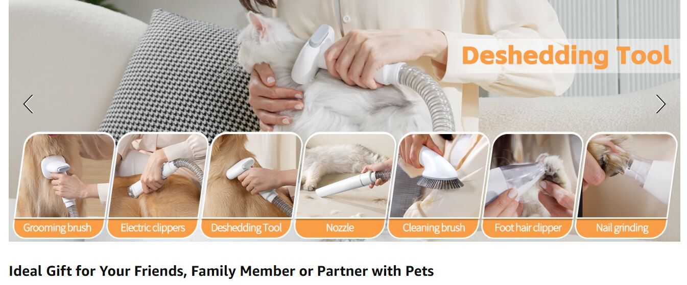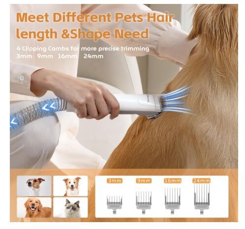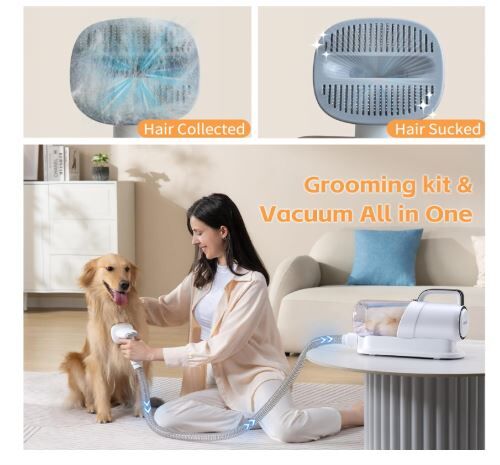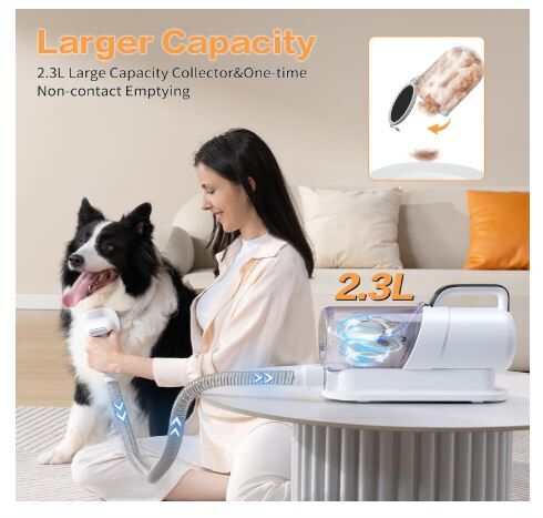 HINOKI Pro pet grooming kit, 8 In 1 pet grooming vacuum, picks up 99% pet hair, 7 Proven Grooming Tools, 2.3L Capacity Pet Hair Dust Cup