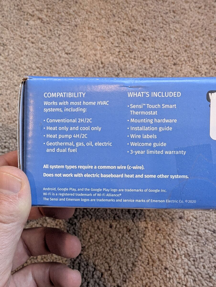 New, open box, Emerson Sensi ST75 smart touch thermostat.