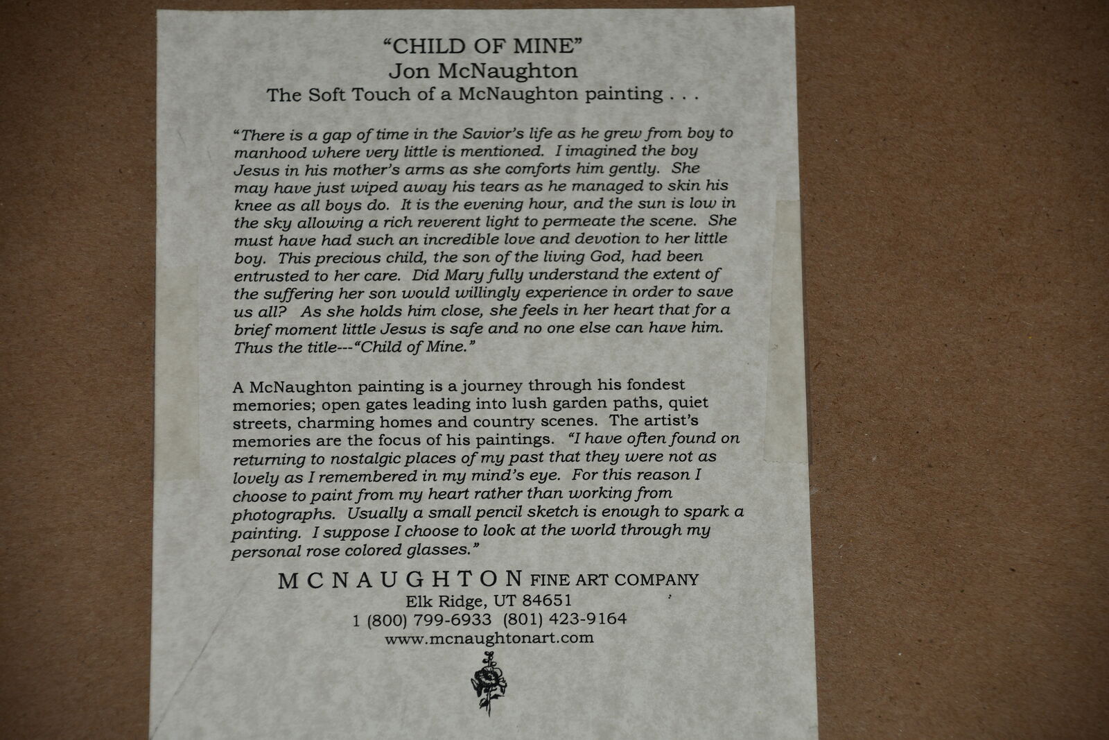 This "CHILD OF MINE" JESUS PICTURE by JOHN MCNAUGHTON is 13" x 15" FRAMED. Our home is smoke free. Questions??? Please ask. We are located in Plain City. Cash only please.