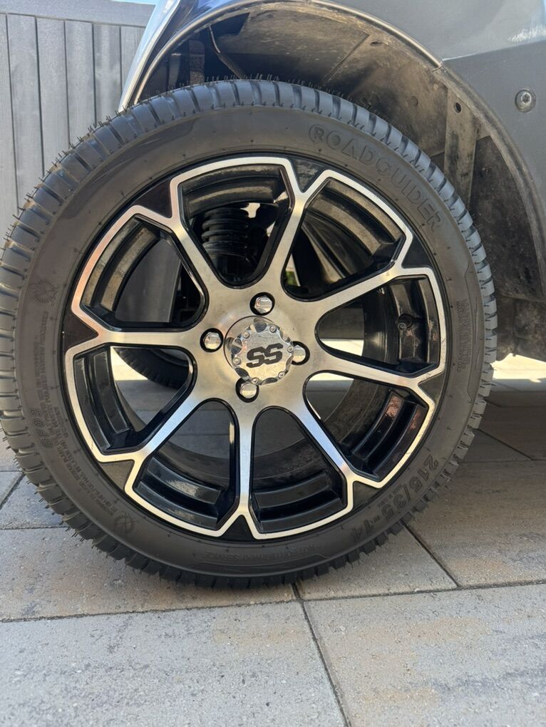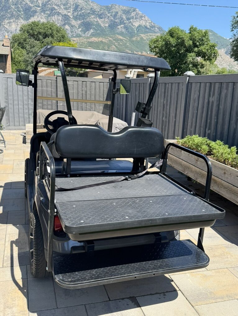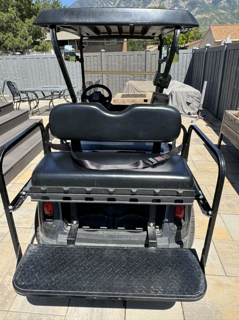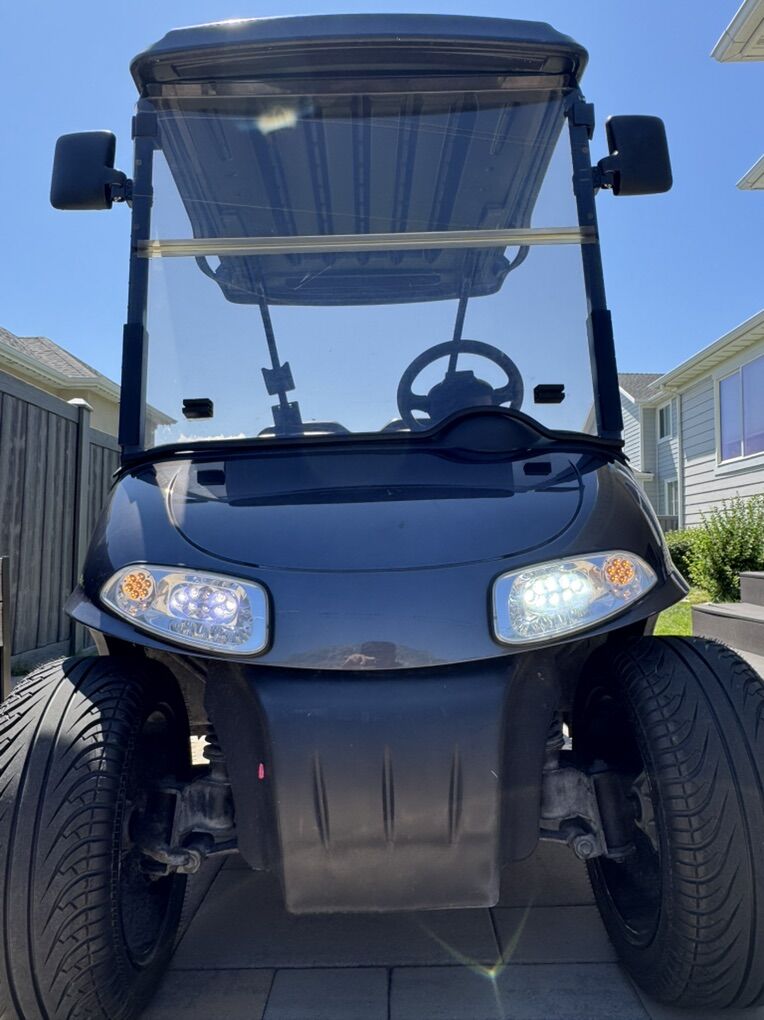 Selling our 4 seater EZGO RXV golf cart. Runs great. Top speed at 17 mph, roughly 35 mile range. It has head lights, brake lights, rear seatbelt, side mirrors and 14 in rims. It rides great and has been super reliable. It has brand new tires. Batteries are about 18 months old.