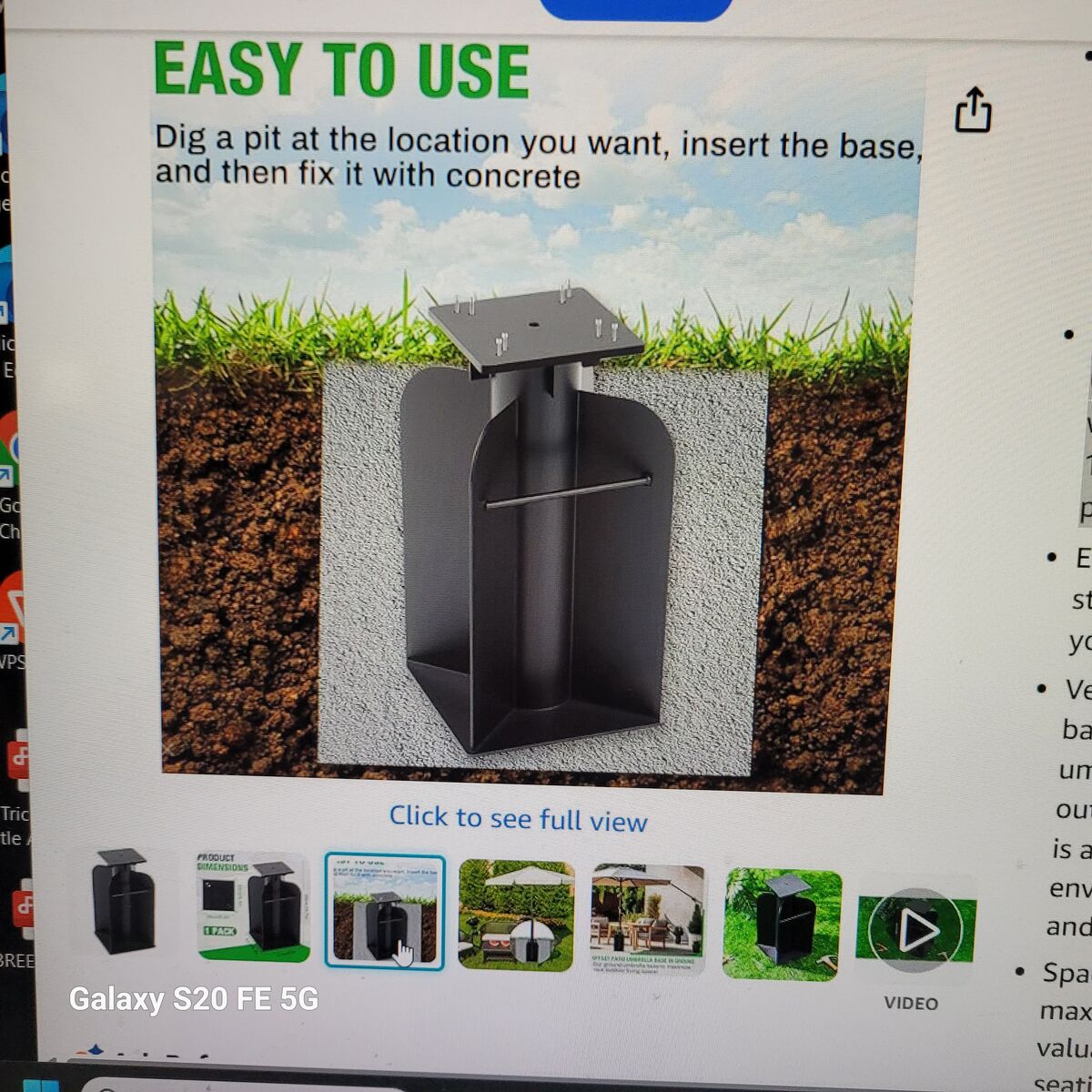 n ground patio umbrella base for offset cantilever and/or upright umbrellas. New in box. Material and Size: made of durable, high strength steel (the mounting panel is made of stainless steel, waterproof and rust-proof), the size is about 8.2 X 8.2 x 15.7 inches, and the weight is approximately 16.4 pounds. Retails for $90. Selling for $40. Message me. CASH ONLY