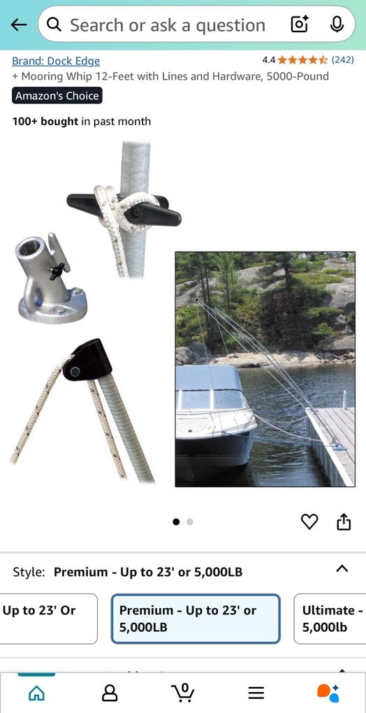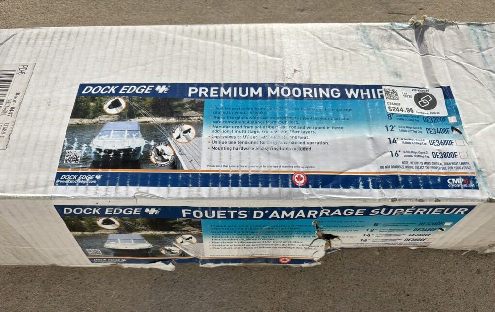 Description- (SET OF 2) 12’ Premium mooring whips to securely attach boat to dock or houseboat while avoiding scratches. For boats up to 23' long/5000 lbs. See photos for more product information and specifications.