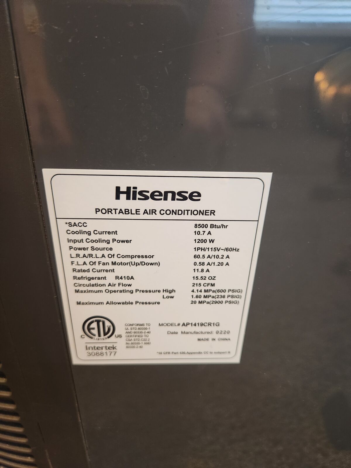 Hisense air conditioner in excellent shape. Used 1 summer. Asking $200 call or text 435-603-0197.