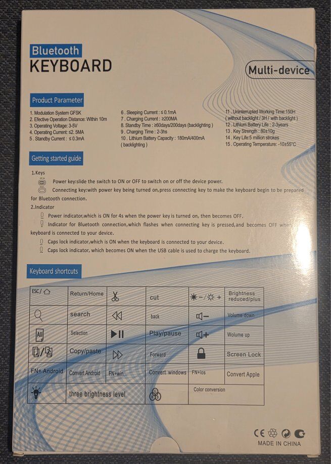 ZelleThe Bluetooth Wireless Keyboard is a sleek and portable device perfect for on-the-go typing. With a QWERTY layout and English keyboard language, it offers a familiar and efficient typing experience. The black color adds a stylish touch to the keyboard, while the Bluetooth connectivity allows for easy pairing with various devices. This unit does not include a charger, making it convenient for use without the need for constant recharging. Made in China, this keyboard is a practical and reliable option for those looking for a compact and wireless typing solution.
