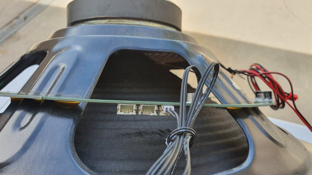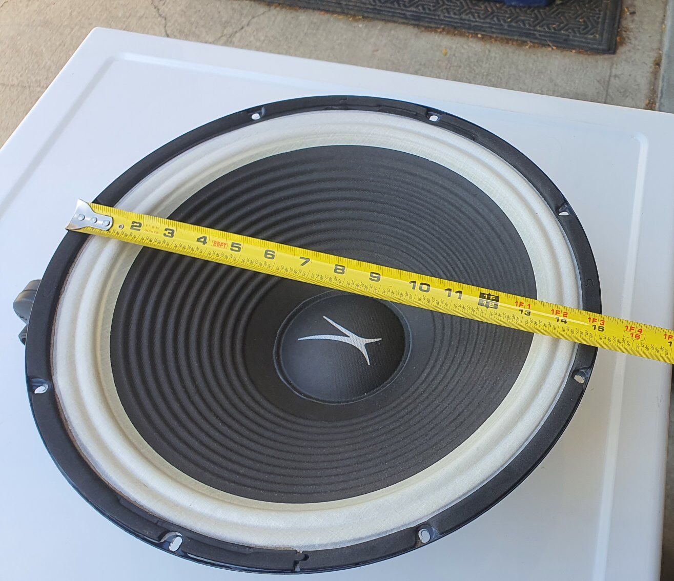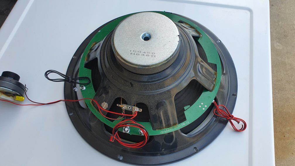 Removed from a 450 Watt system. Brand is Altec Lansing. Comes with Tweeter and Bass Rhythm Strobe Light already soldered on. Just cut the wires if you dont want the lights.