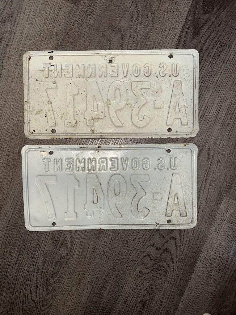 ApplePayGenuine 1970 US Government license plate set, Department of Agriculture, United States Forest Service. Heavy gauge metal, raised letters and numbers. Rare matching set.