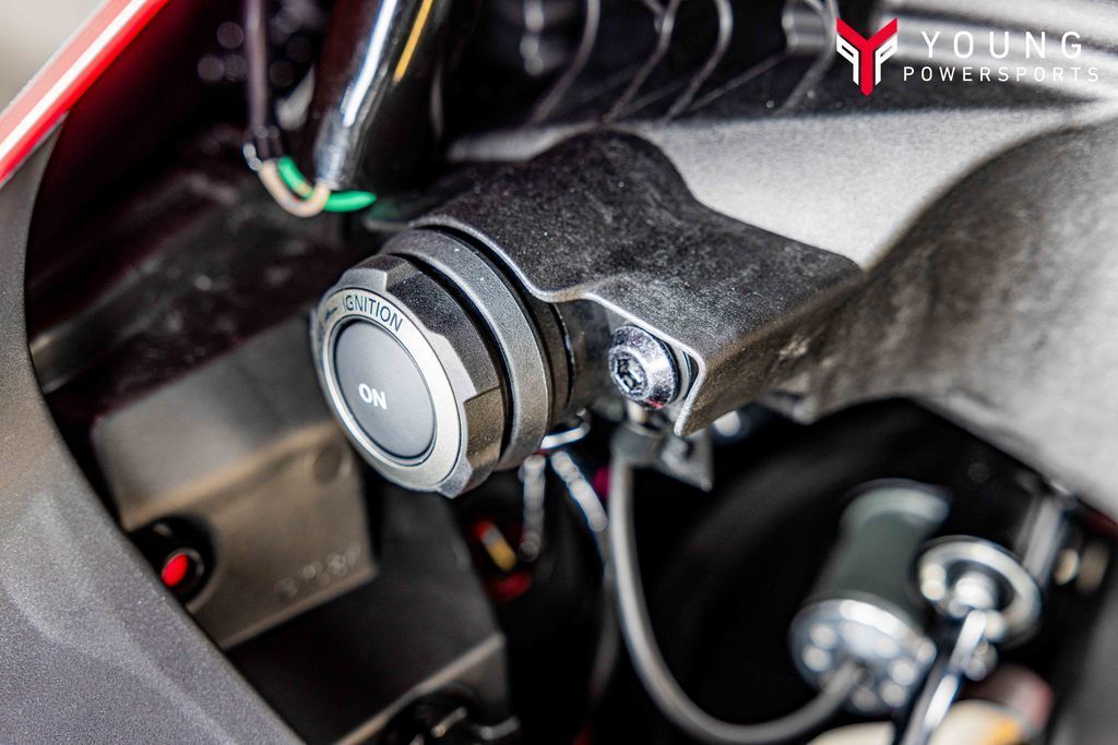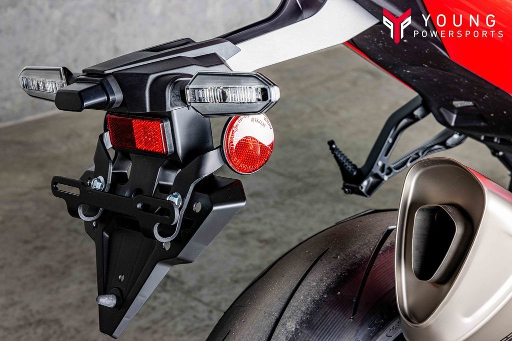 Developed jointly with Akrapovic, the muffler is made out of titanium for light weight and improved mass centralization, while a special valve helps boost torque at lower revs and increase horsepower at higher rpm.
