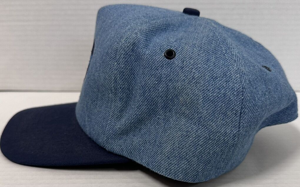 The Vintage 1990’s Hankook Tires Denim Snapback Hat is a stylish accessory perfect for men who appreciate retro fashion and iconic branding. Made from durable denim material with a solid blue color, this adjustable snapback hat features the Hankook Tires logo, adding a touch of nostalgia to any outfit.