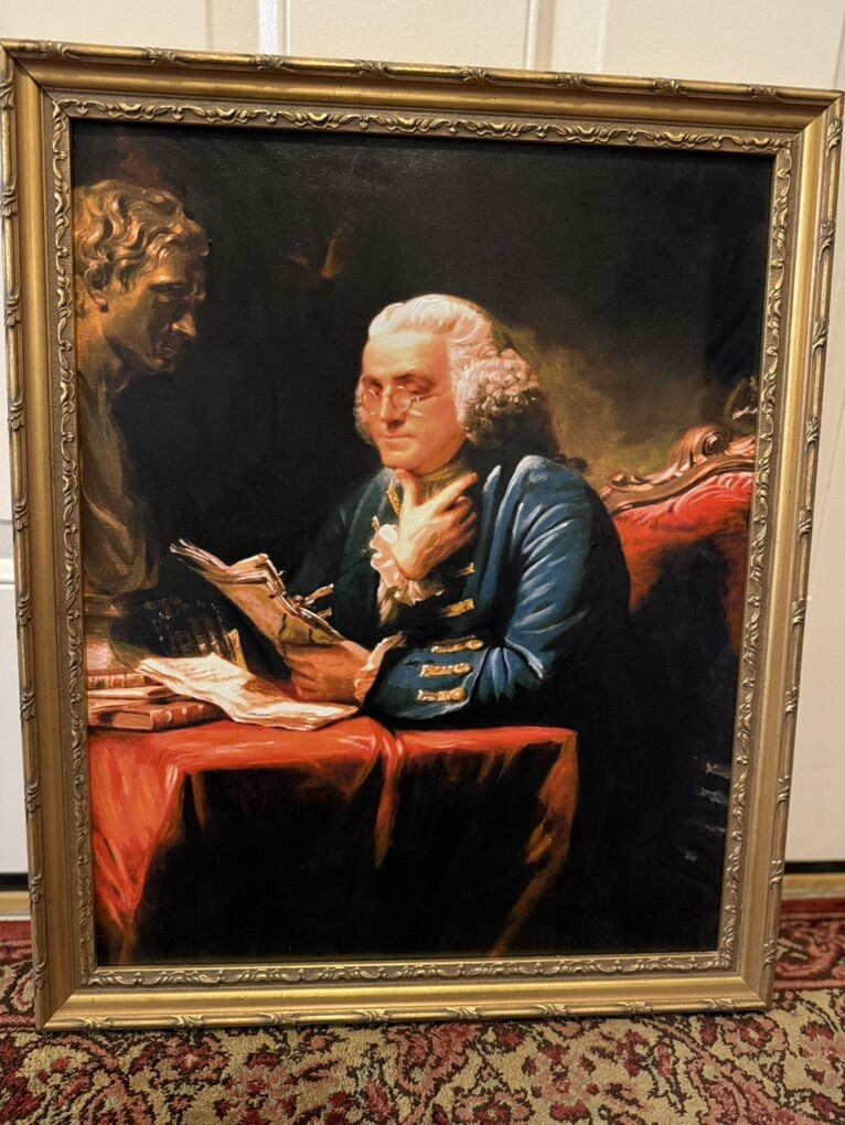 VenmoThis is an Original Oil Painting Reproduction on Canvas of Benjamin Franklin. It includes a beautiful gold leaf hardwood frame. Measurements are in the photos. Feel free to view in person without feeling obligated to buy. Tap on “from this seller“ to see my other listings. Was Asking $150.00