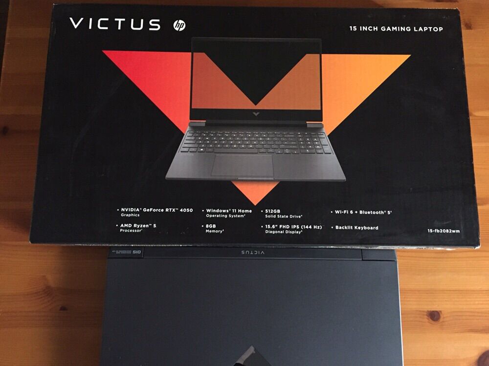 New sealed HP Victus gaming laptop RTX 4050 6GB GDDR6 AMD Ryzen 8645HS (6 cores 4nm Zen4 Hawk Point 54 watts, faster and more efficient than 13th gen Intel i5-13500H 10nm) AMD Radeon 760M via APU 16 GB DDR5 (8 GB installed + 8GB I will provide but not installed) 512 GB nVME SSD 15.6” FHD IPS display Windows 11 New, sealed (warranty expired 9/10/25) Battery will need to charged before first use Model 15-fb2082wm