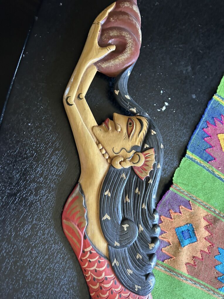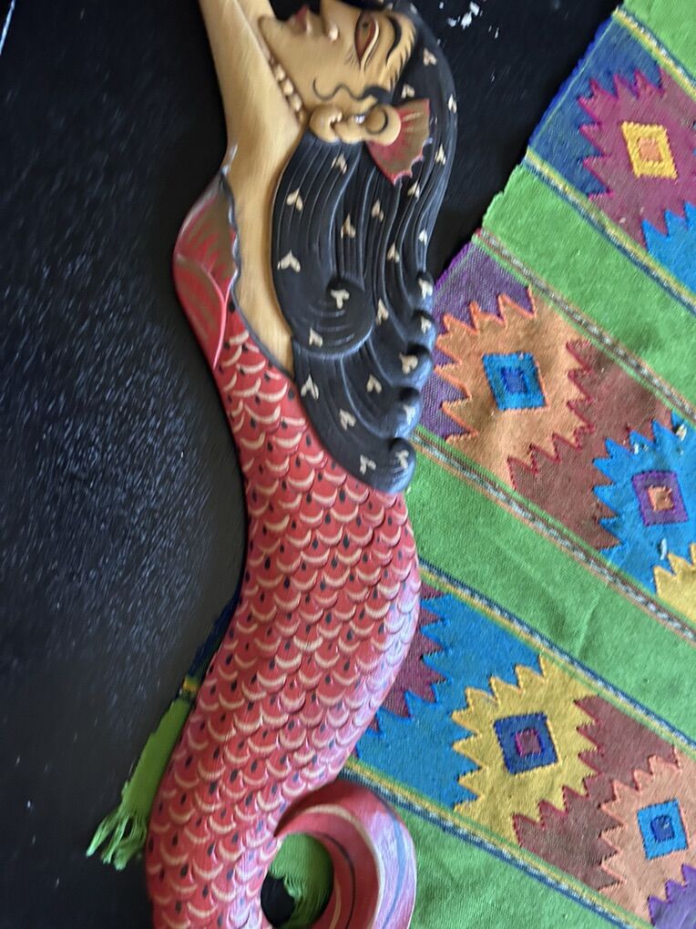 VenmoBalinese Folkloric Mermaid Goddess Wood Wall Art Bali Indonesia 31 inches lenght