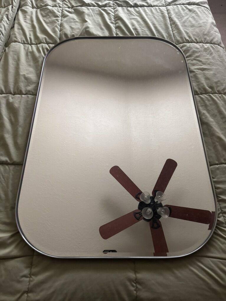 Crate&Barrel Edge Medium Silver Rounded Rectangle Wall Mirror