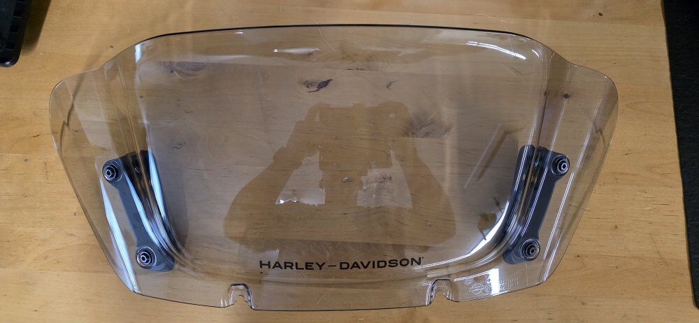 PayPalThis is a like new 8” Light Smoked Harley-Davidson windshield for 2023.5 and up Street Glides. Only $75 and cost $260 plus tax from HD. is Part Number: 57400601 and includes Part Number: 57400668, Tall Windshield Mounting Kit. In the world of functional performance, size does matter. After all, it's simple to understand that the larger the windshield area, the greater the amount of wind deflection. The Wind Splitter Windshield is shaped for the perfect combination of effective airflow management and wow styling. • 8" Light Smoke windshield specifically designed for riders between 5'4" and 5'9" in height. A rider in this range will experience up to 50% reduction of visor pressure over the stock windshield. • Rigorous fluid dynamic analysis and wind-tunnel testing shows significant reduction in helmet pressure and air velocity. • Sweeping design complements the shape of the fairing and the inner dash panel, and adds height over a traditional low-profile wind deflector in the center where it counts. • Shape decreases wind noise and improves your ability to hear the motorcycle sound system. • Light Smoke finish does not interfere with your forward view, and looks great against any paint color. • Polycarbonate material is protected by a scratch-resistant layer. • Easy-to-install with new floating bracket design and features Harley-Davidson script for a distinctive finishing touch.