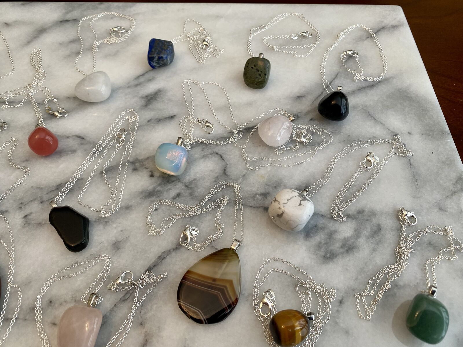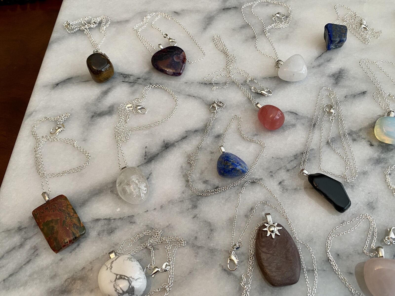 NEW- Beautiful Natural Healing Stones Necklaces on 20 inch Silver Plated Chain Your Choice $11 C PIX. Examples may include citrin, lapis, agate, opal, jasper, amethis, quartz, tiger eye, aventurine, bloodstone, obsidian, and their varieties.