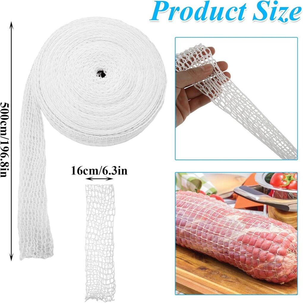 Stretched Meat Net: Meat smoking net with 18 holes around the circumference, the working diameter of the smoking net is 7.02 inches (18 cm). This meat netting roll can be used for all types of meat and cuts of meat, including sausage, pork tenderloin, roast beef, hoofs and more Material & Size: The butcher twine for meat cooking is mainly made of food-grade natural rubber and the length is 164ft(50m), which is enough for your family and you can also share it with your friends.