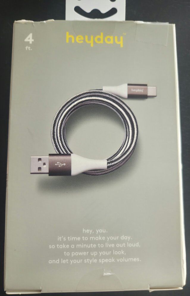 PayPalProduct Type: USB-A to USB-C charging cable, designed to charge and sync devices. Brand: Heyday, a brand known for tech accessories. Compatibility: Supports Android devices, iPhone 15 models, and select iPads. Features: The cable is braided for durability and measures 4 feet in length, offering flexibility in use.