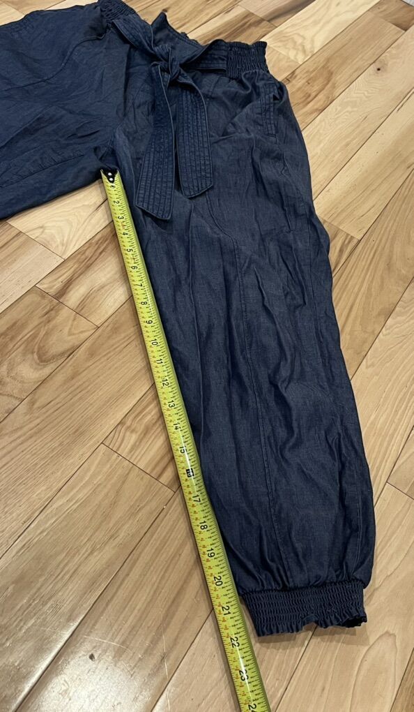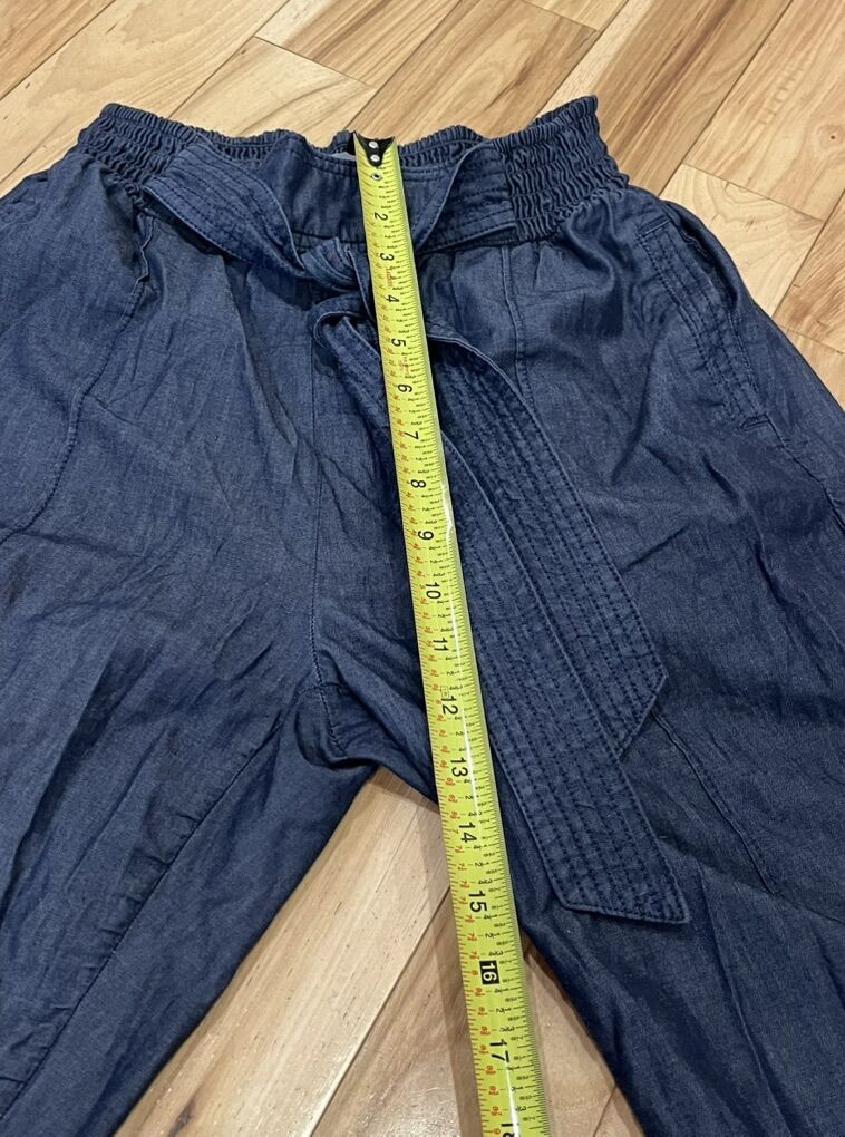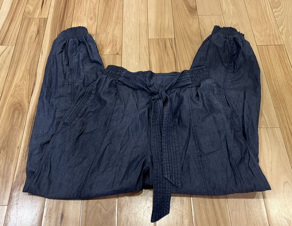 by Anthropologie Globetrotter Chambray Blue High Rise Jogger Style Casual Dress Pants - Women’s Size XS - with tie waist and pockets - pre-owned, excellent condition.