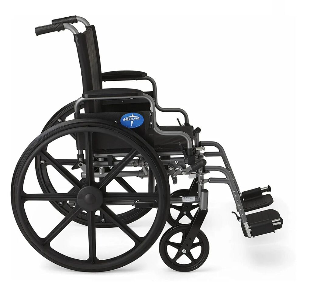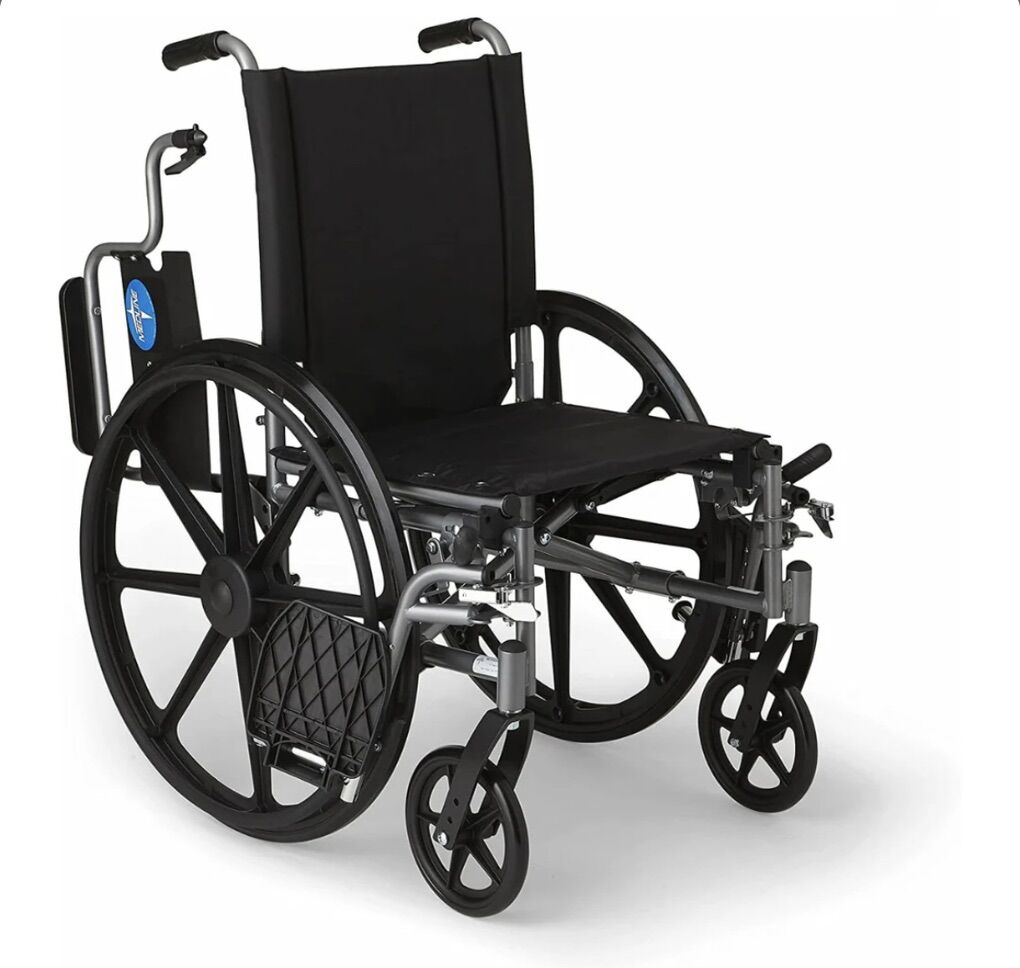 VenmoNEW IN THE BOX. This smartly designed Medline lightweight K4 Basic Wheelchair is easy to maneuver yet sturdy enough to support people weighing up to 300 pounds. A great choice for on-the-go users who want the easy access of flip-back desk arms and swing-away leg rests. The breathable nylon seat provides all-day comfort and the elevating back rest moves up and down for customized support.