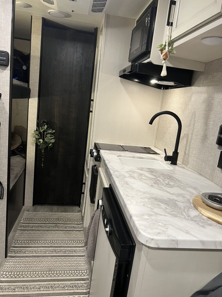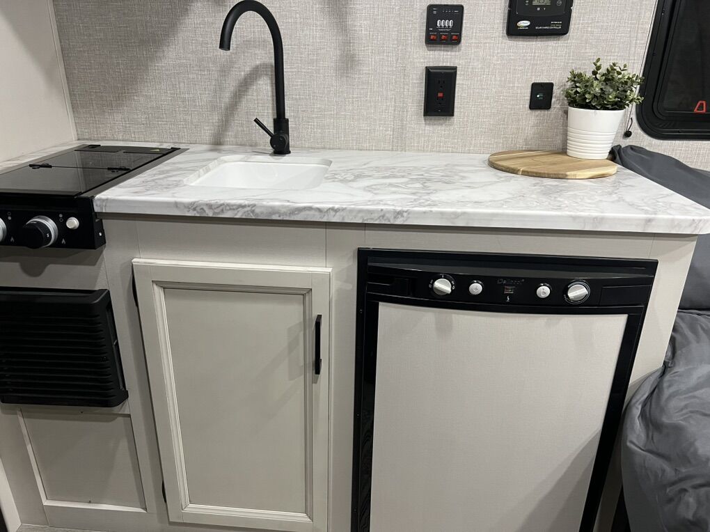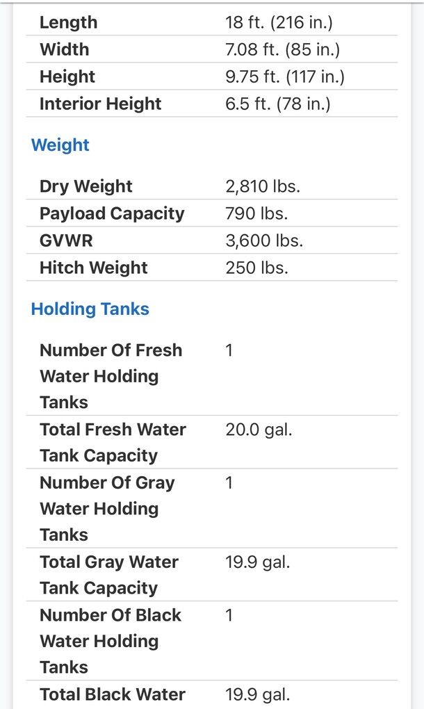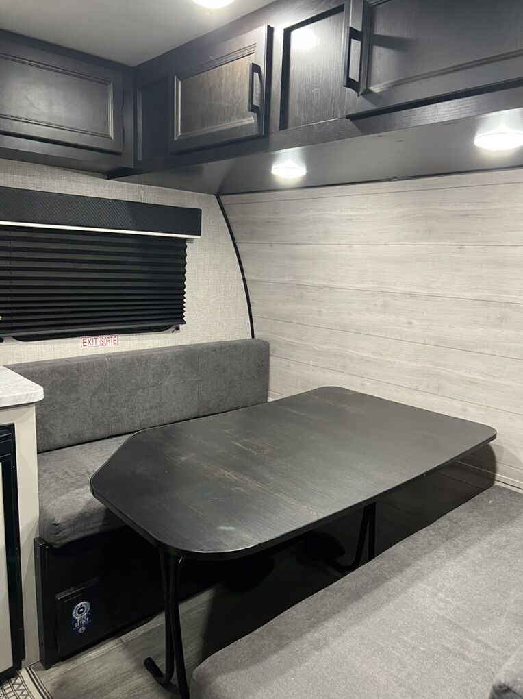 Interior: Fold down dinette sleeps 2 Upgrade cabinetry Interior solar controller with digital screen Tub shower combo 2 bunks Fridge is propane, electric or battery