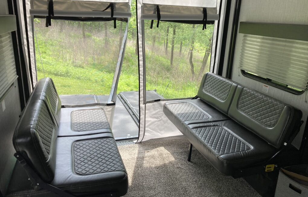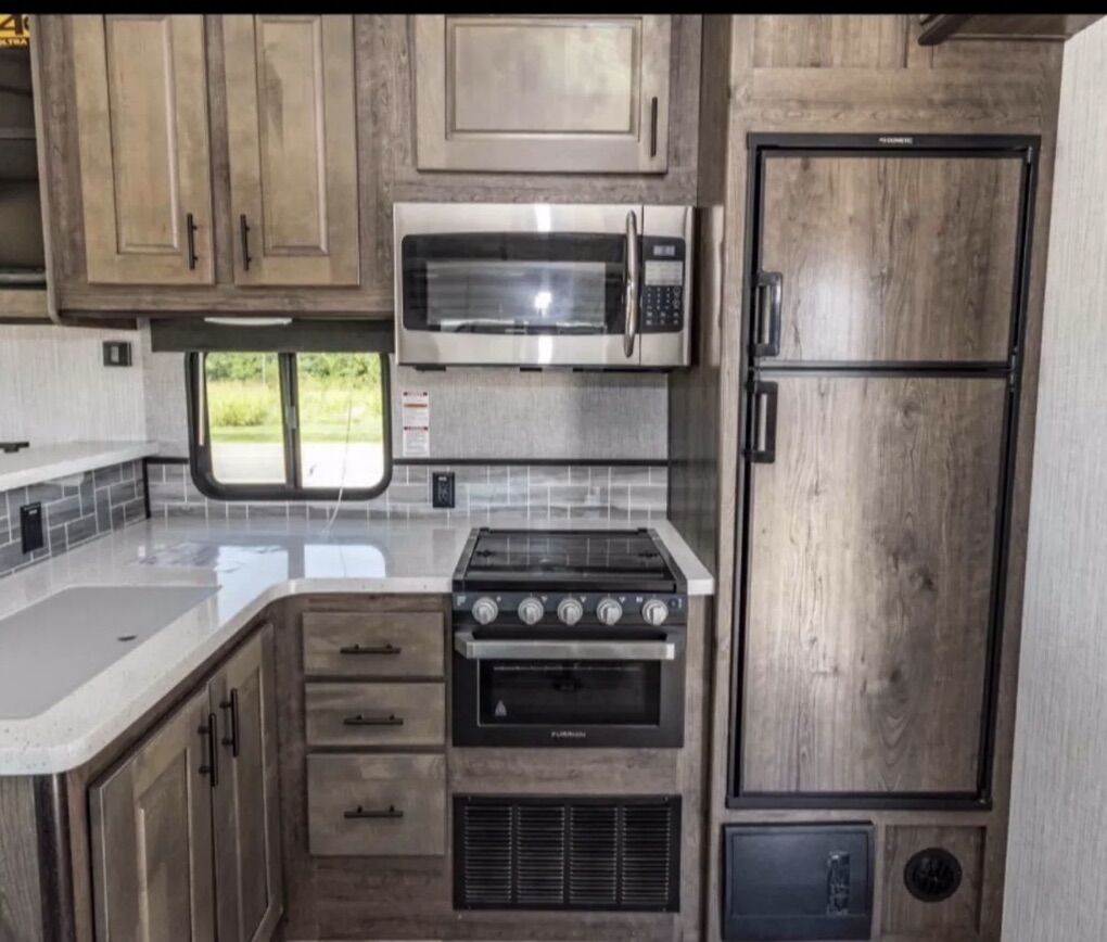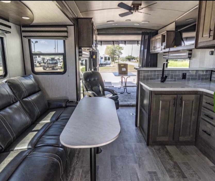 No trades. No scams. 2021 Heartland Torque TQ T314 in excellent condition. This a toy hauler travel trailer with a length of 38 feet, a dry weight of 9,196 lbs, and a GVWR of 12,800 lbs. It can sleep up to 7 people and features two 15,000 BTU air conditioners, a 35,000 BTU heater, and a 10-gallon gas/electric water heater with DSI. A Jim Hensley hitch. Solar panels installed and an inverter. The garage area has dimensions of 15’ in length and includes standard features like a ramp door, soft cargo wall, storage cabinets, and tiedown/tracks.Great storage. 2 Televisions (32” in bedroom & 55” in the main area)